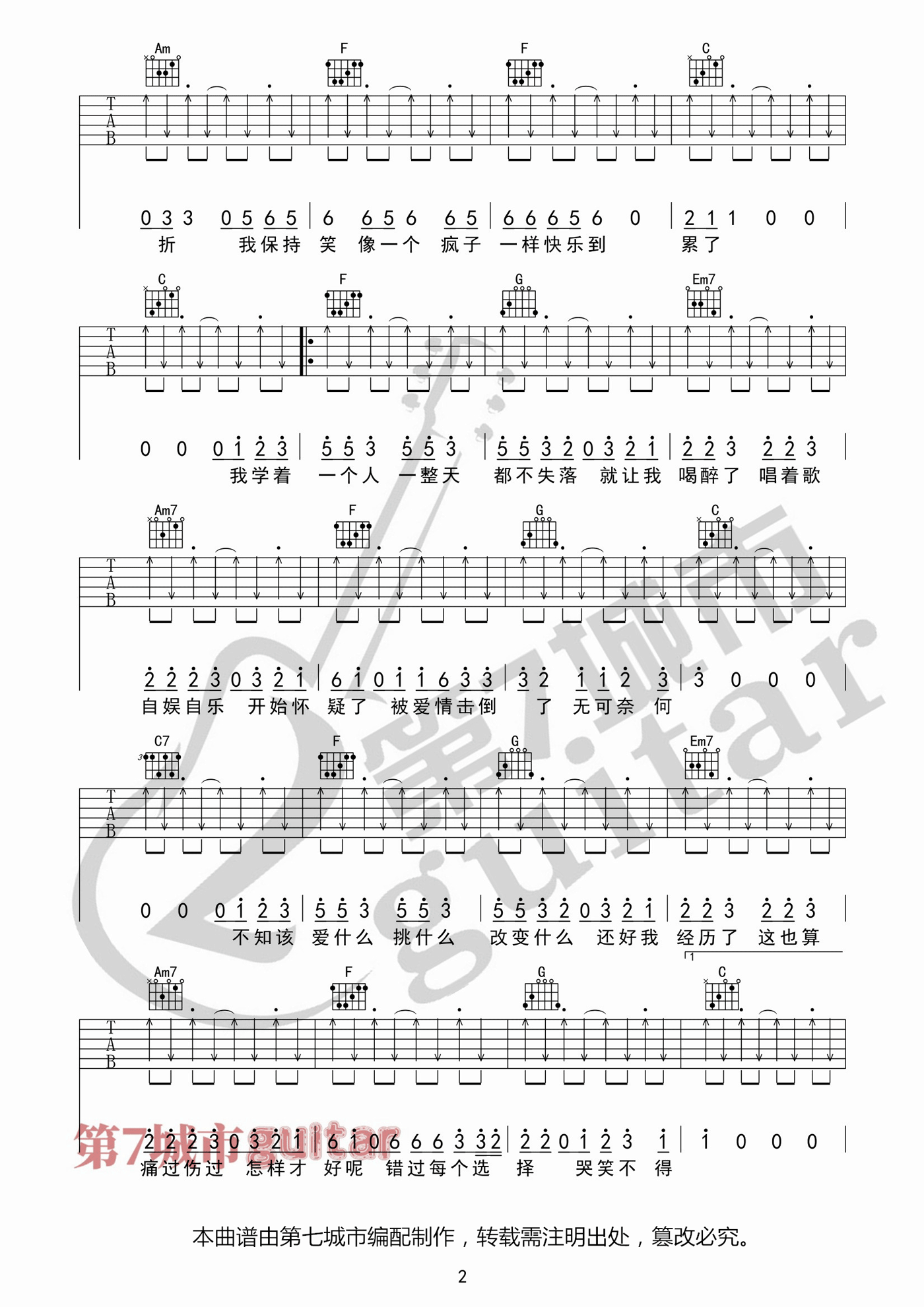 当前位置:琴谱网>吉他弹唱>自娱自乐