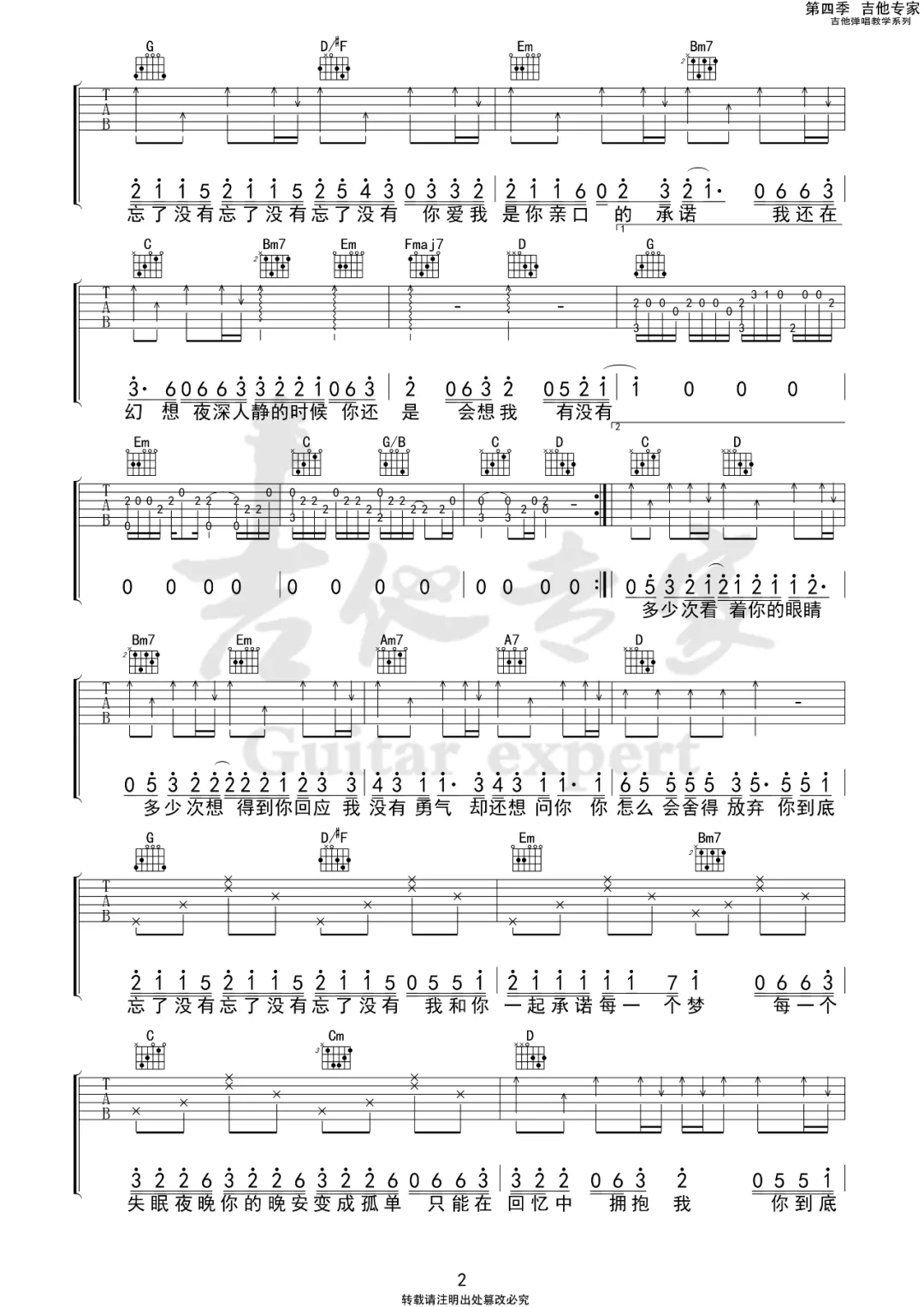 当前位置:琴谱网>吉他弹唱>忘了没有