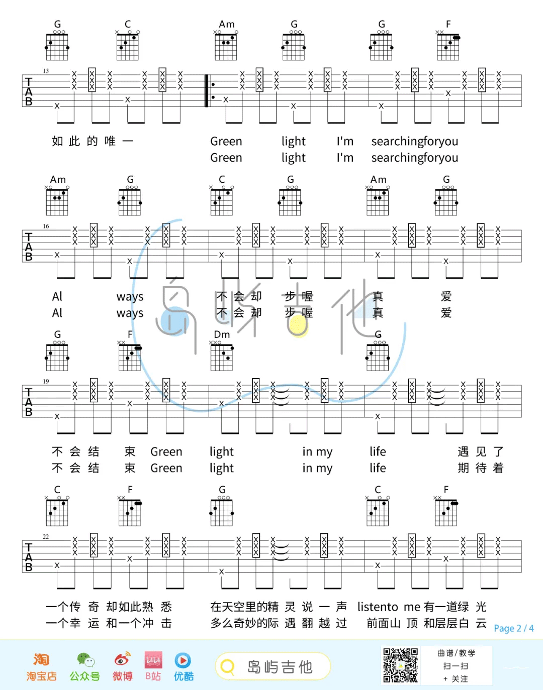 当前位置:琴谱网>吉他弹唱>绿光