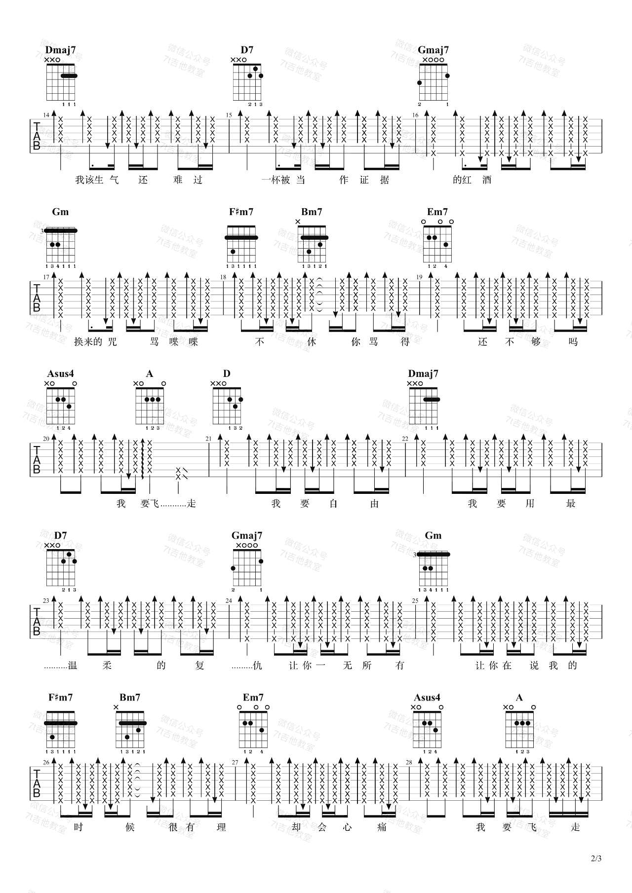 曲谱介绍: 杨乃文《证据》吉他弹唱谱,采用D调指法编配,共有3张高清图谱。