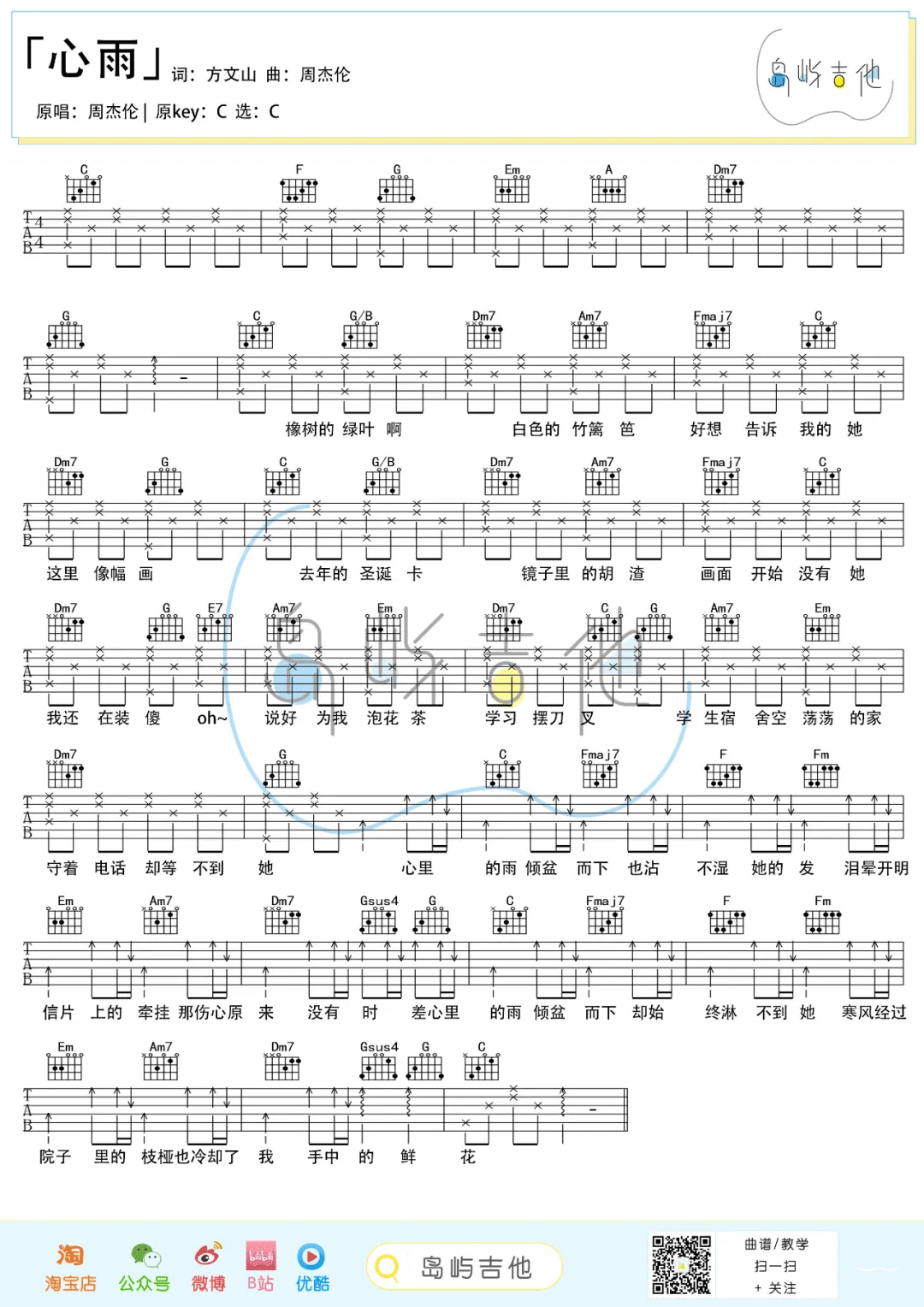 心雨吉他谱 - 周杰伦 - C调吉他弹唱谱