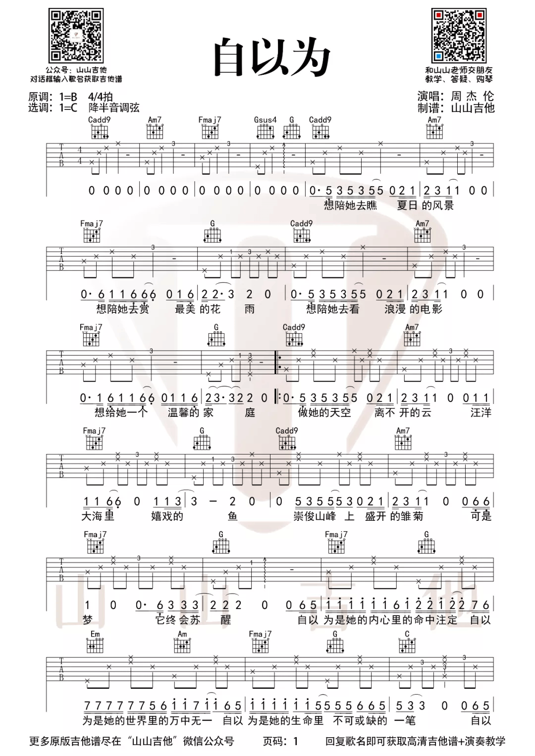 当前位置:琴谱网>吉他弹唱>自以为