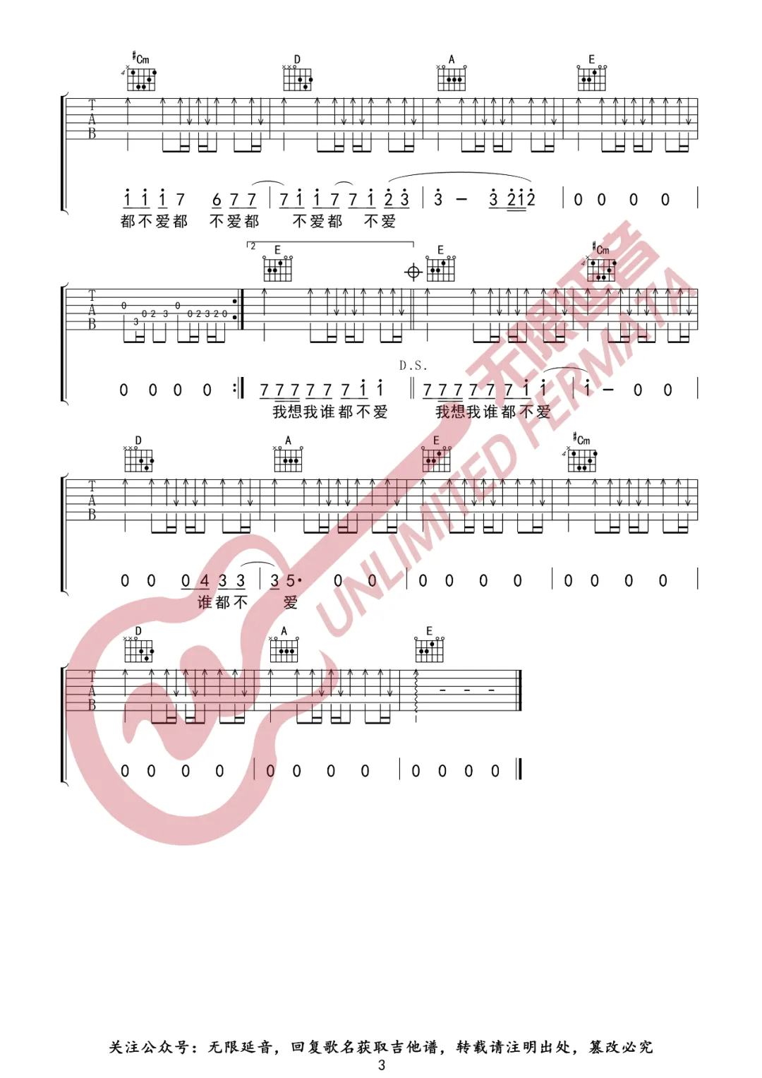 曲谱介绍: 薛之谦《意外》吉他弹唱谱,采用C调指法编配,共有3张高清图谱。