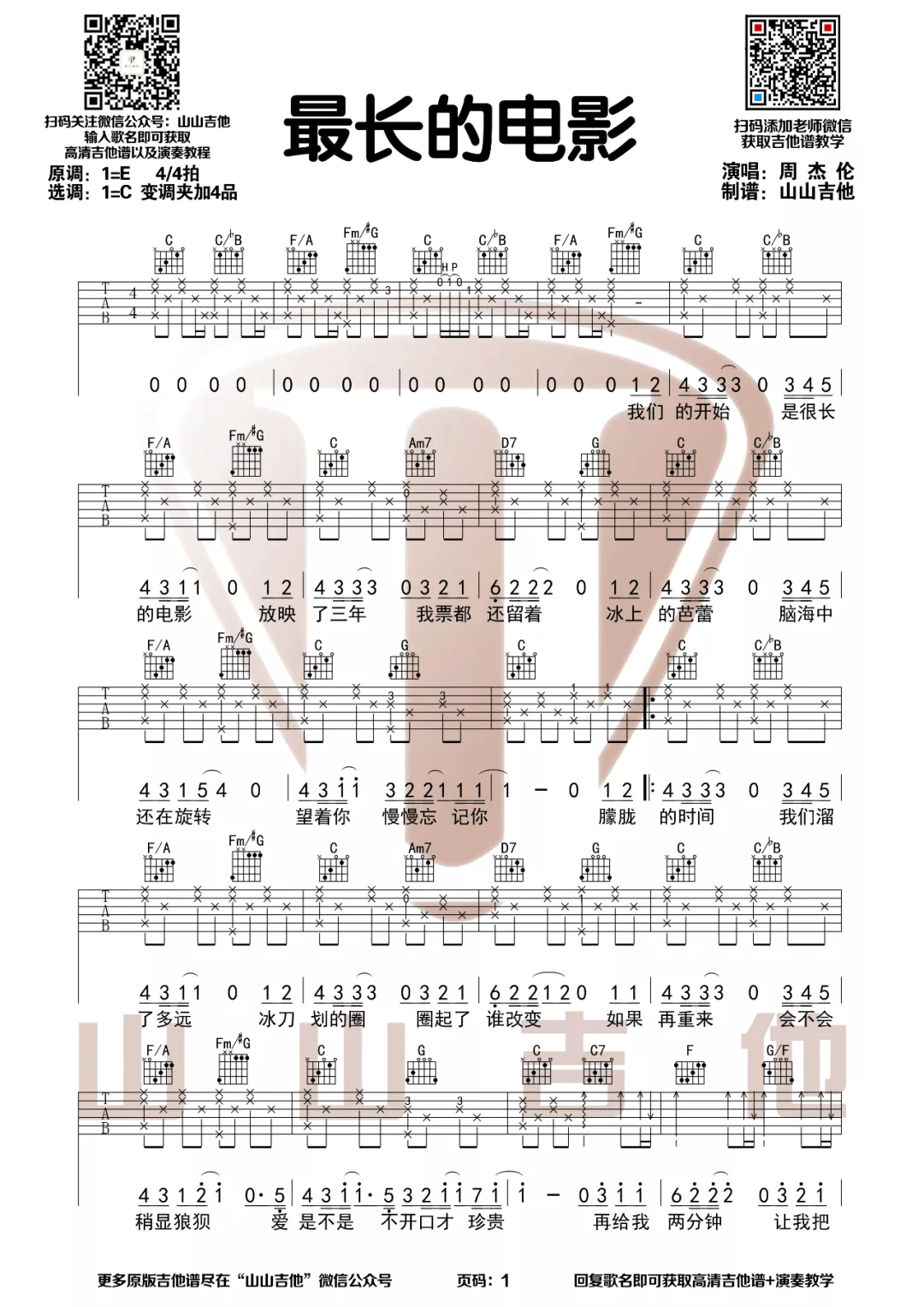 最长的电影吉他谱 - 周杰伦 - C调吉他弹唱谱
