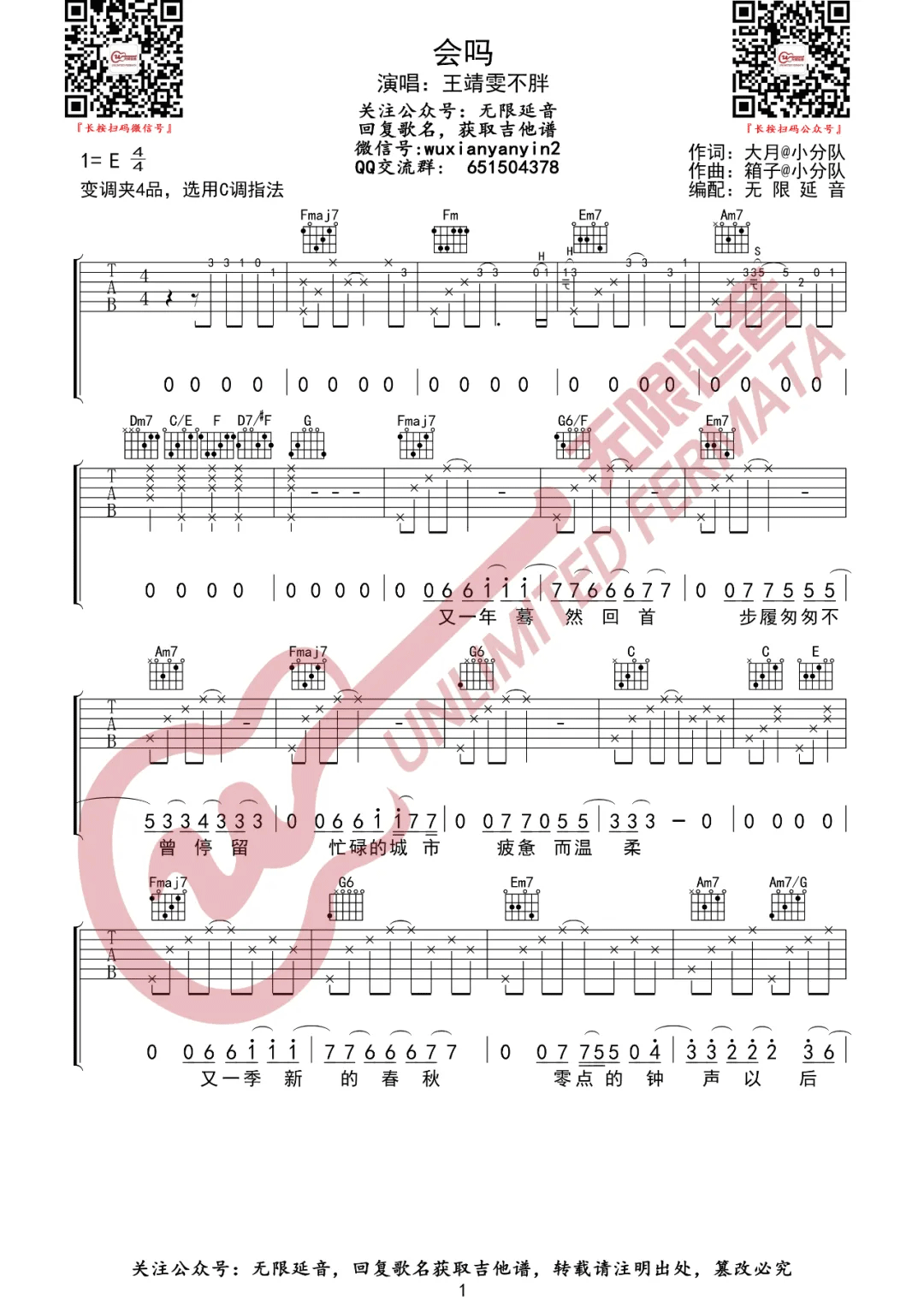 会吗吉他谱 - 王靖雯不胖 - C调吉他弹唱谱