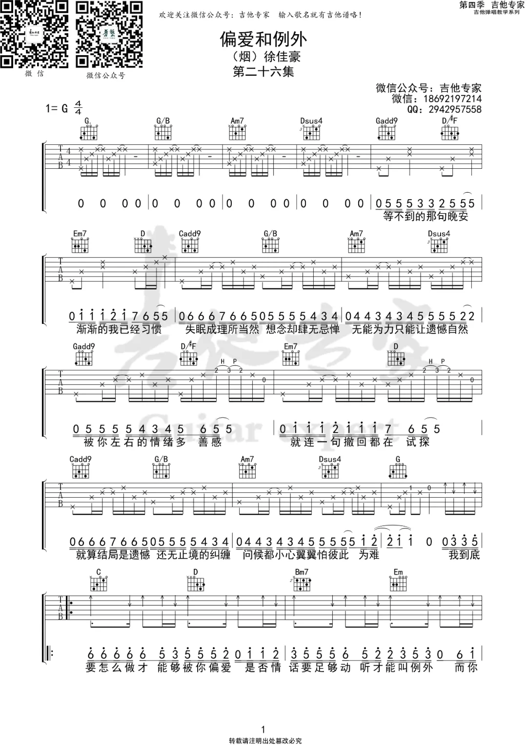 当前位置:琴谱网>吉他弹唱>偏爱和例外