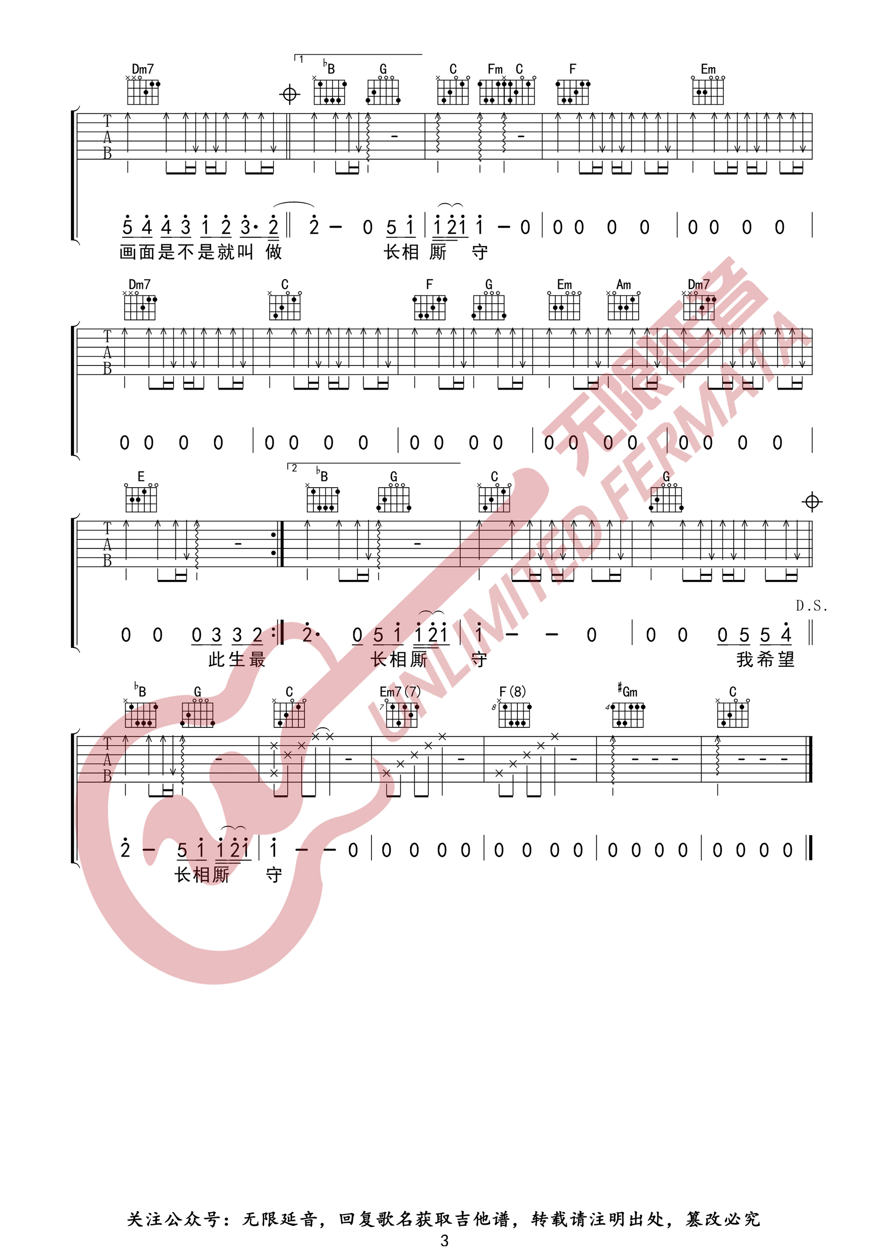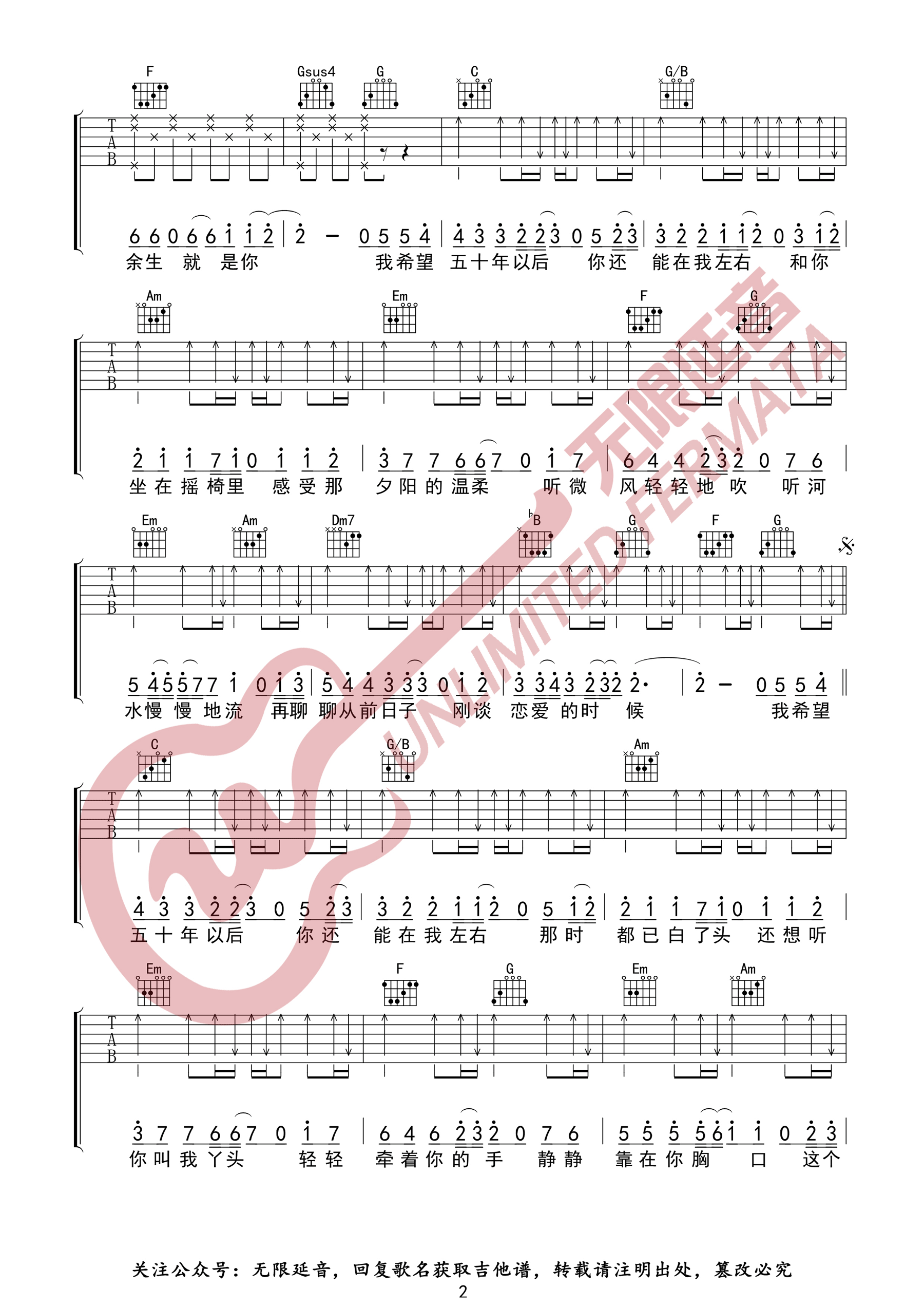 曲谱介绍: 海来阿木《五十年以后》吉他弹唱谱,采用C调指法编配原版,共有3张高清图谱。