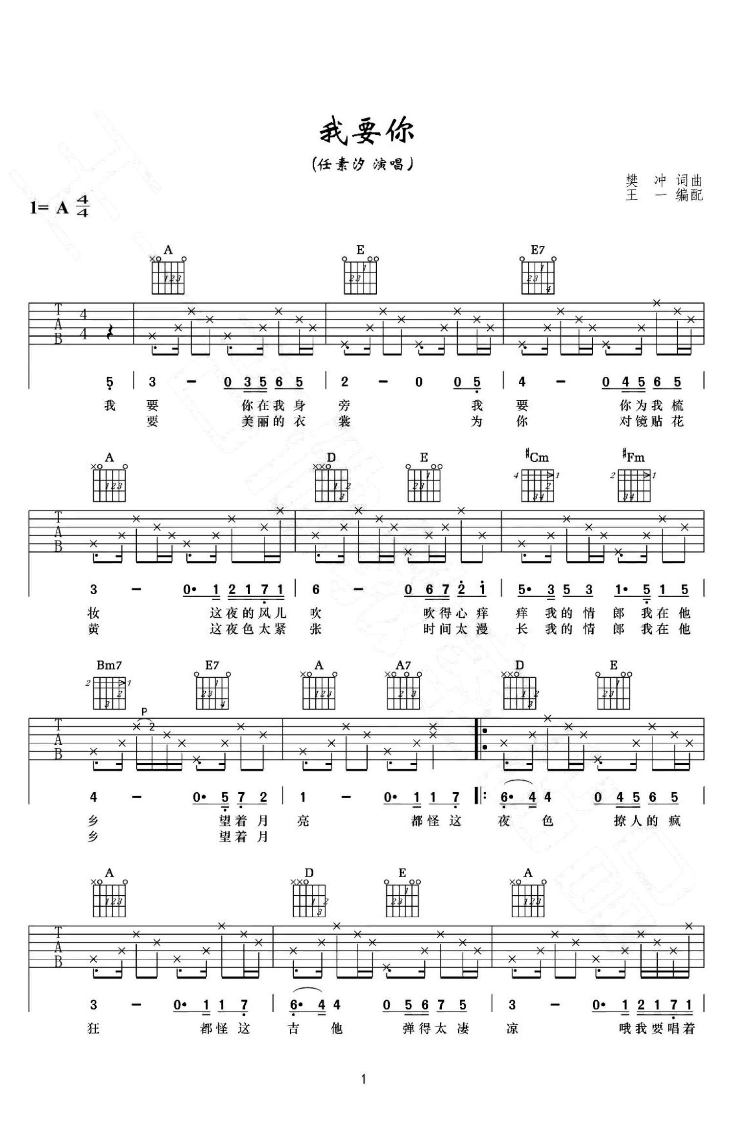 我要你吉他谱 - 任素汐 - 吉他弹唱谱