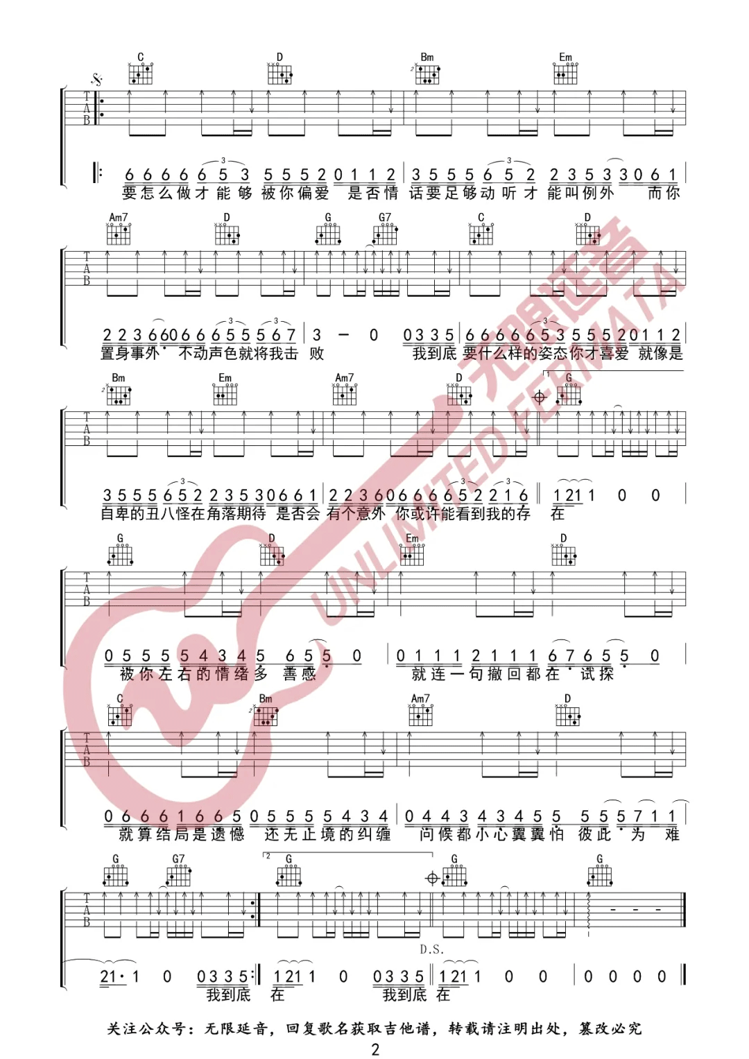 曲谱介绍: 许佳豪《偏爱和例外》吉他弹唱谱,采用G调指法编配,共有2张高清图谱,免翻页排版设计。