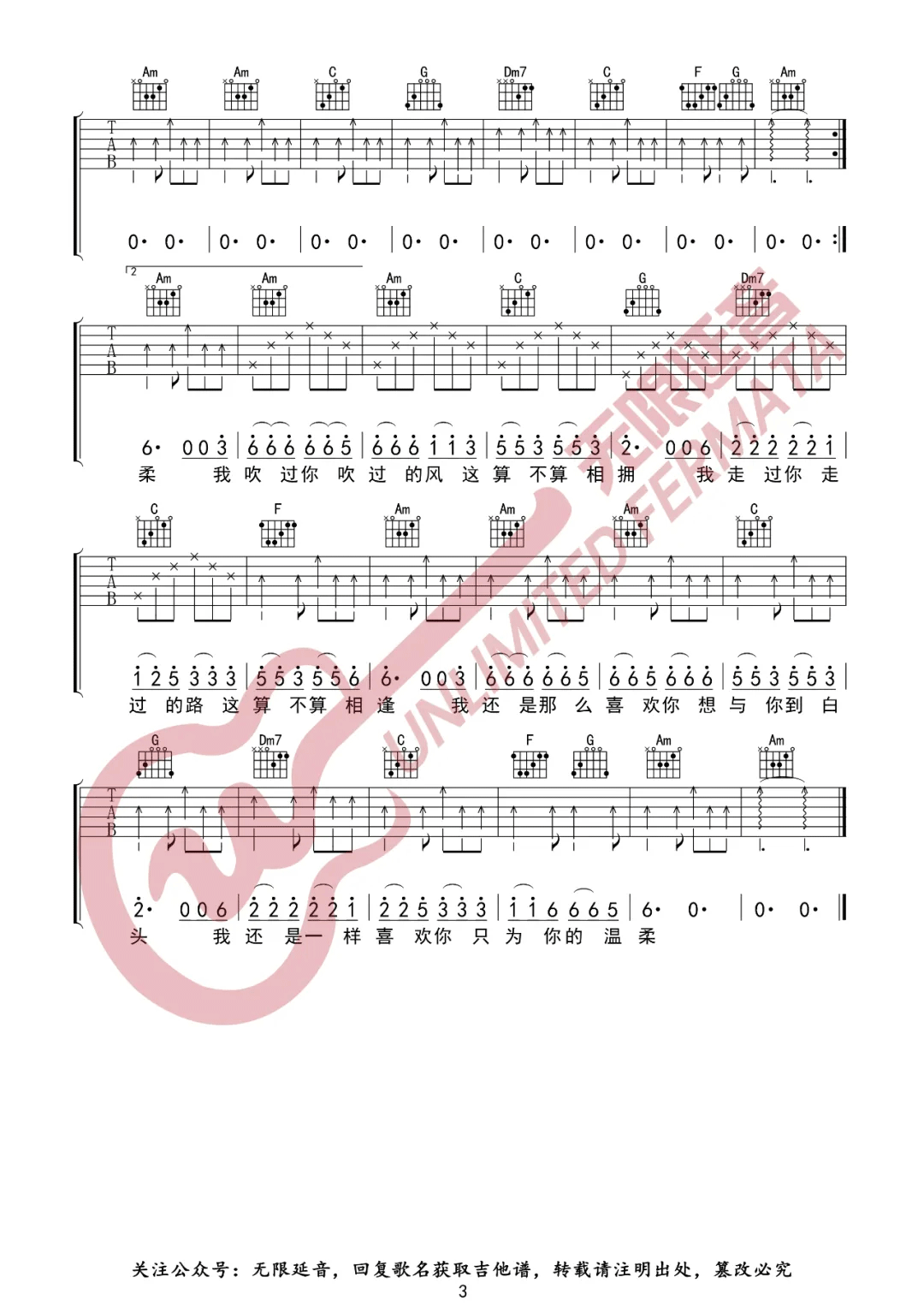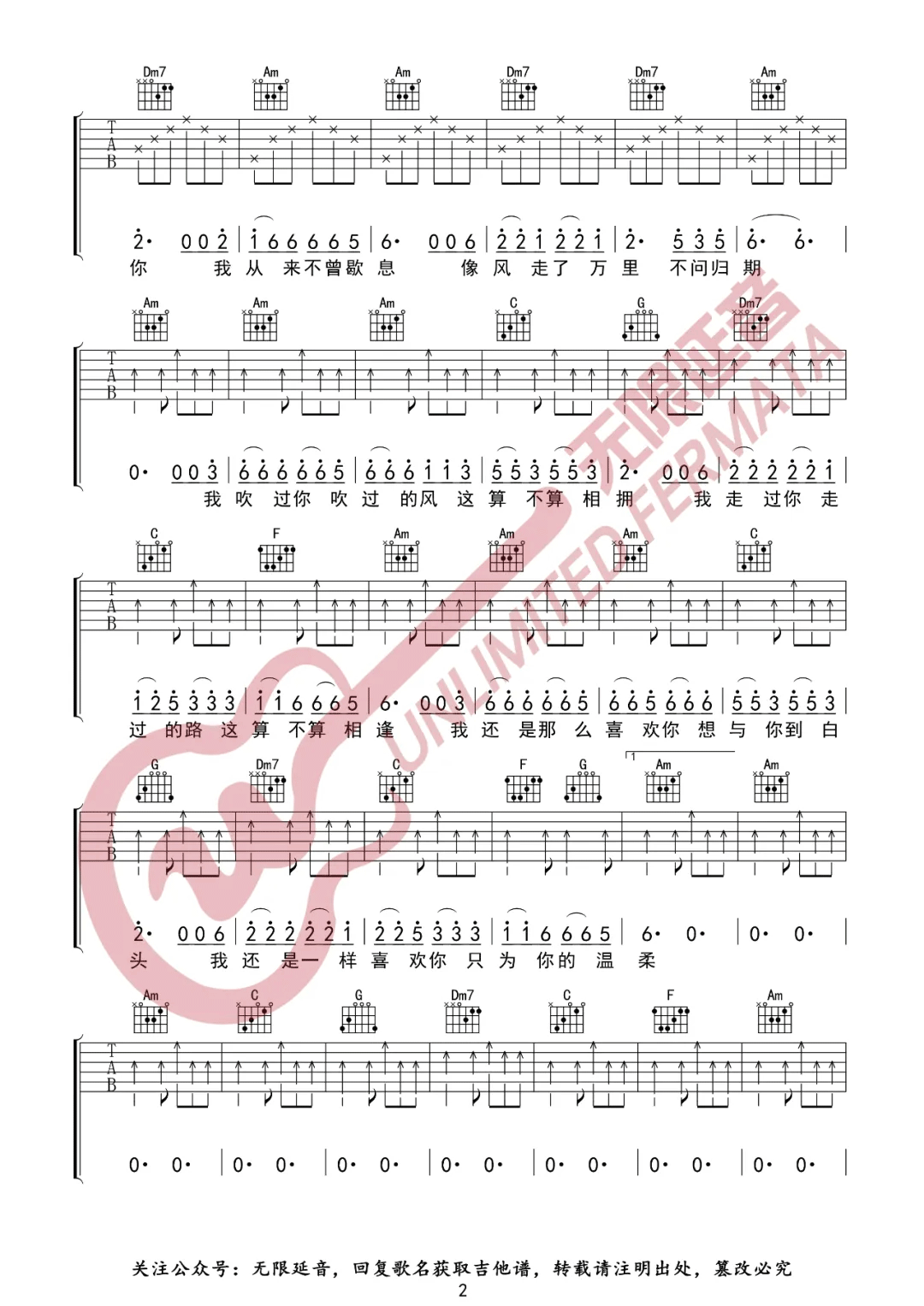 曲谱介绍: 刘钧《听闻远方有你》吉他弹唱谱,采用C调指法编配,共有3张高清图谱。