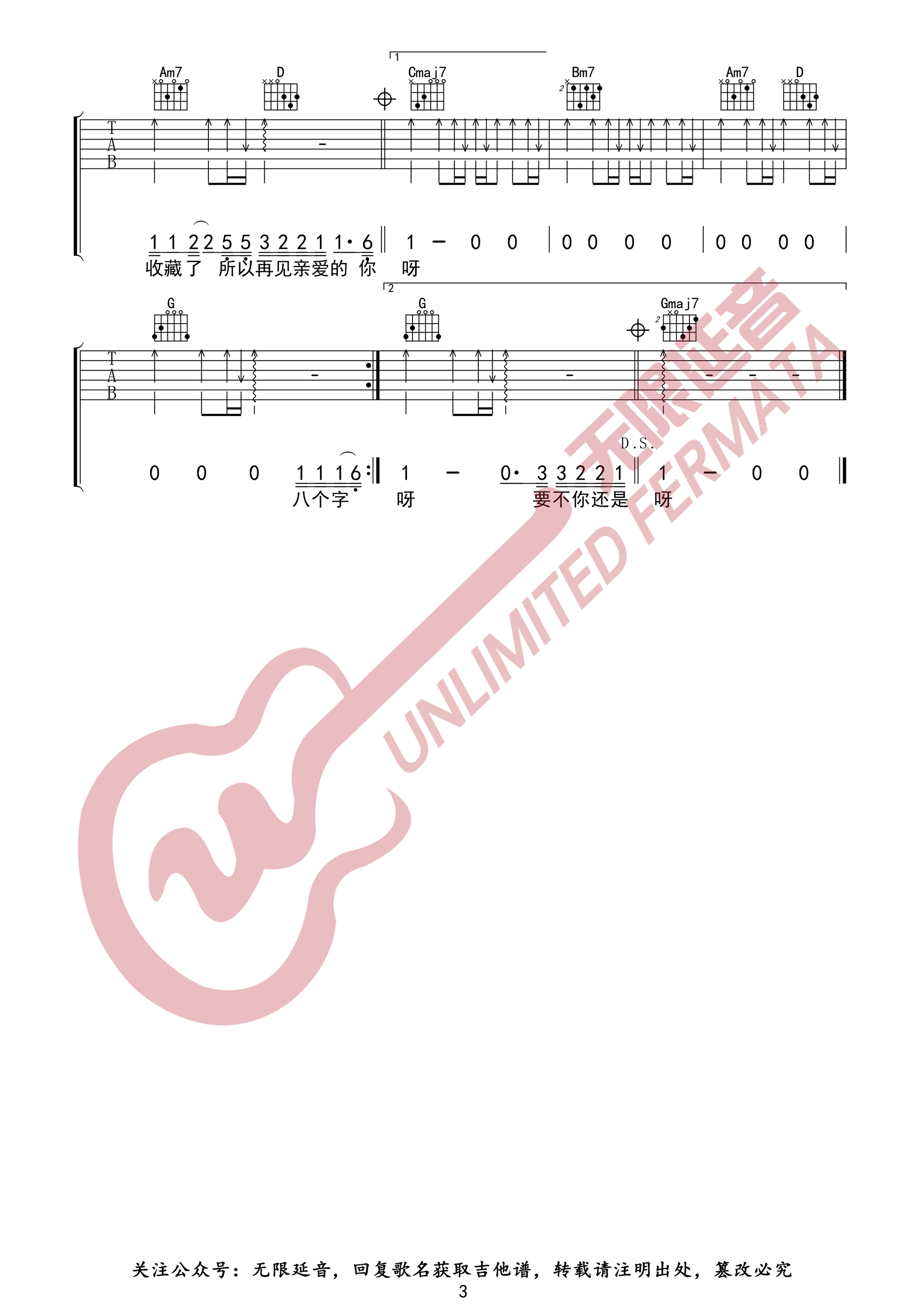 曲谱介绍: (烟)许佳豪《删了吧》吉他弹唱谱,采用G调指法编配原版,共有3张高清图谱。