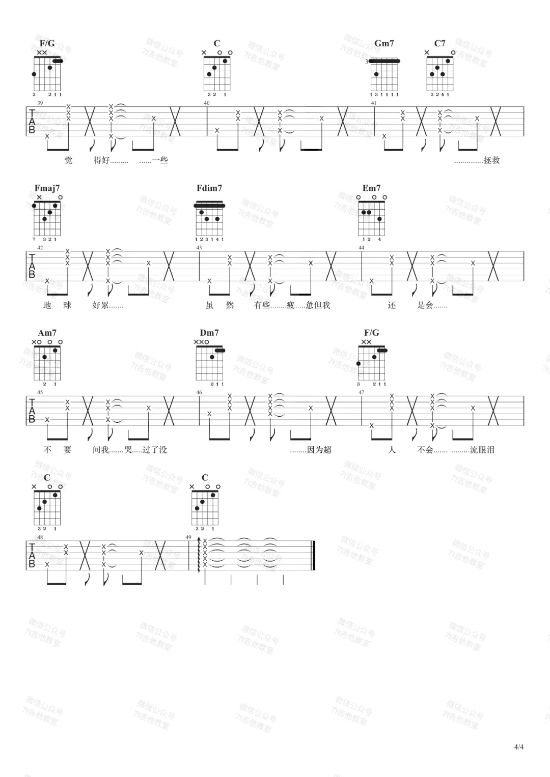 吉他弹唱C调来源:良好市民100 浏览2024-01-26 11:00发布图谱共4页