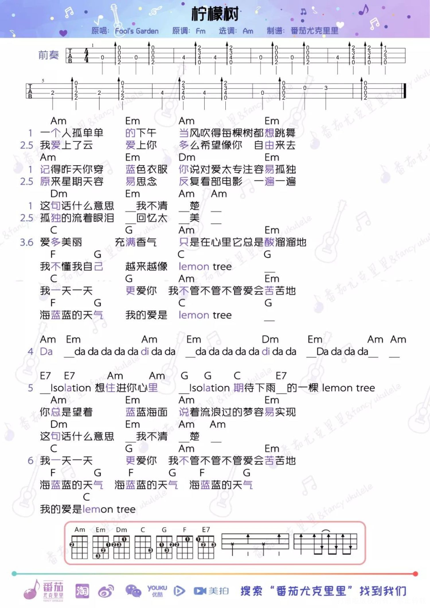 Lemon tree尤克里里谱 - Fool’s Garden