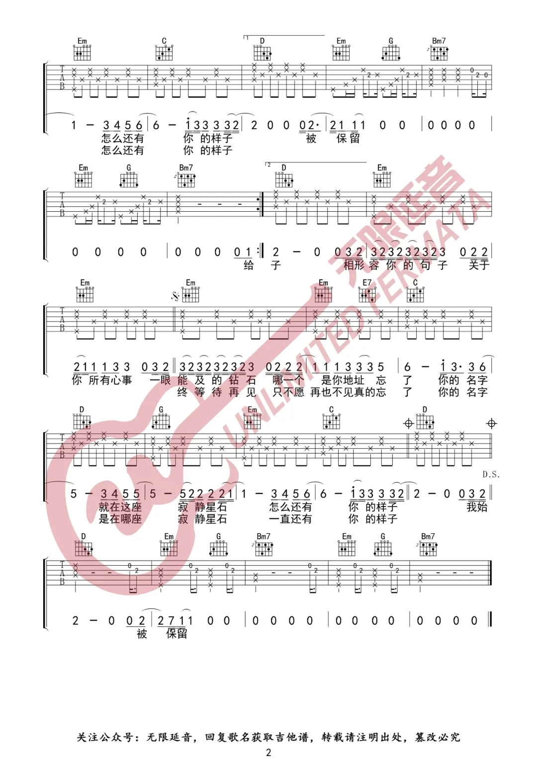 曲谱介绍: 郭顶《保留》吉他弹唱谱,采用G调指法编配,共有2张高清图谱,免翻页排版设计。