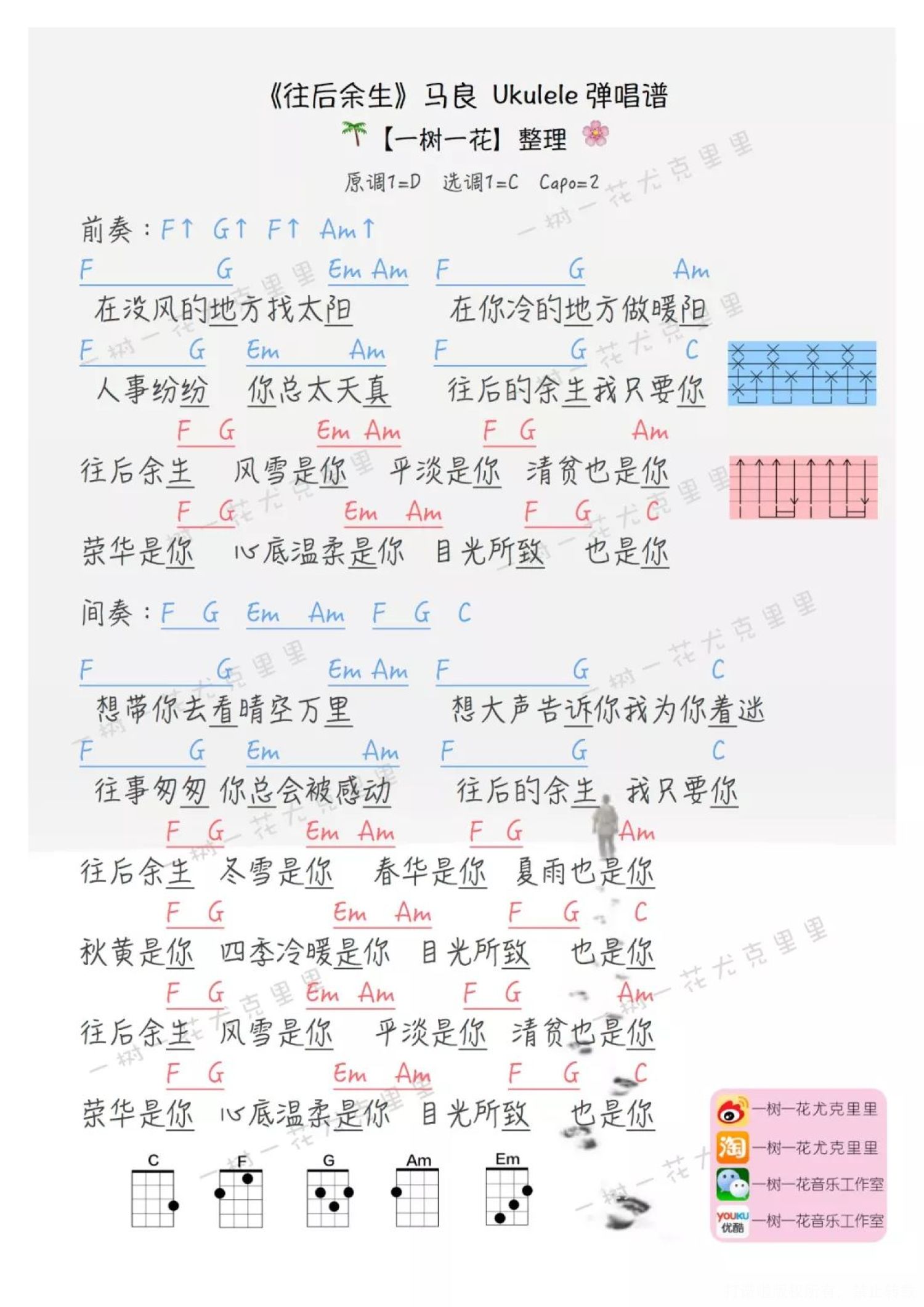 曲谱介绍: 《往后余生》尤克里里弹唱谱