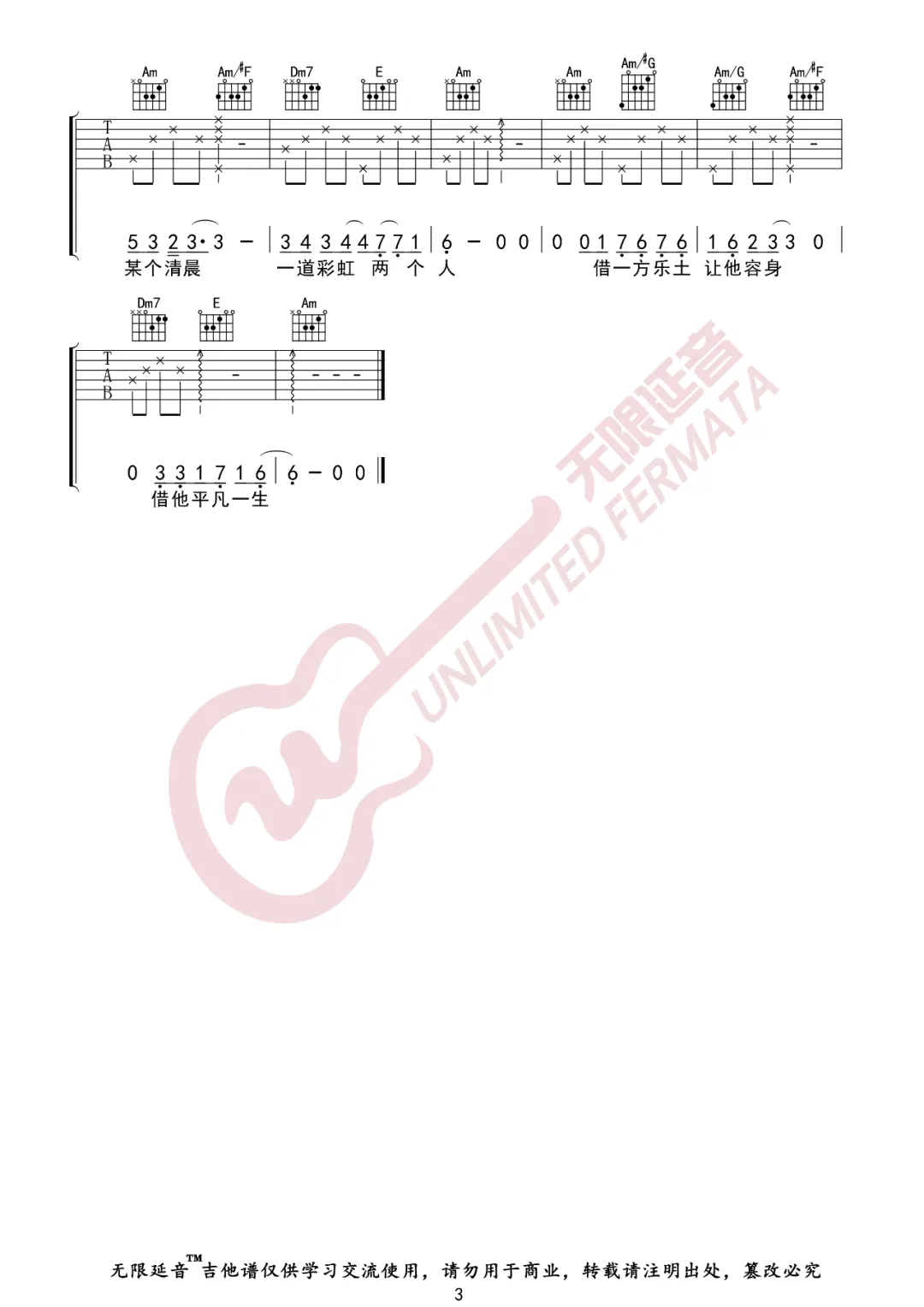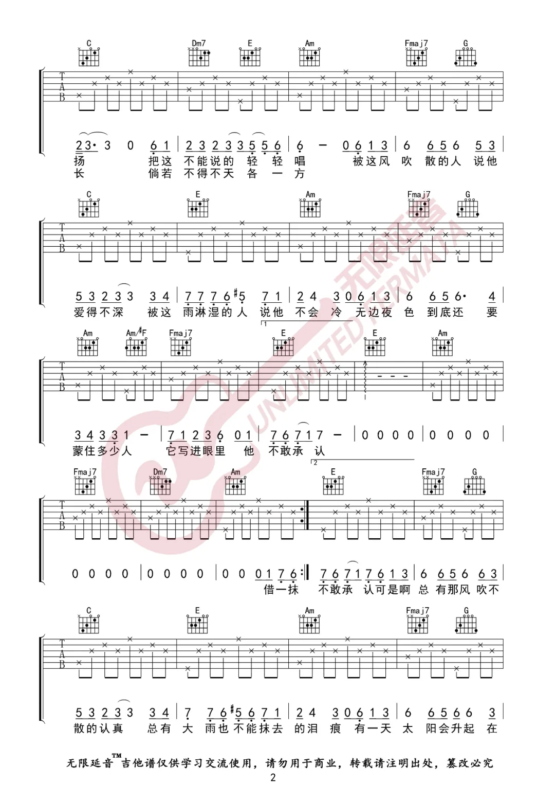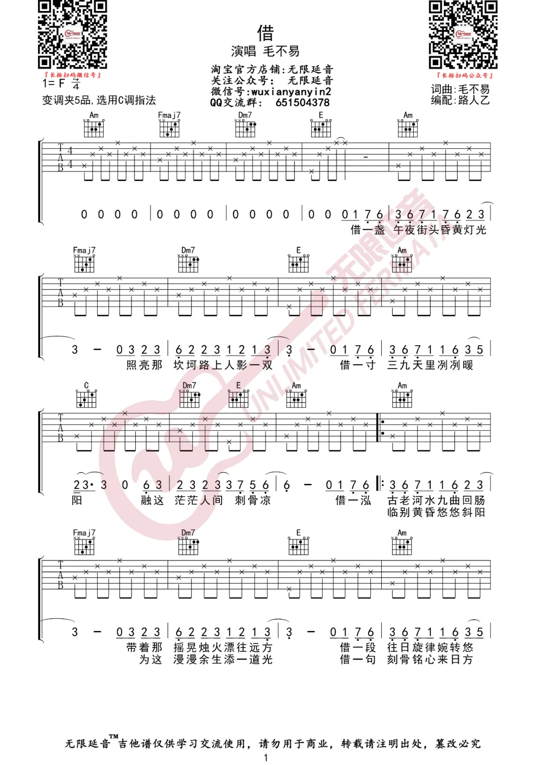 曲谱介绍: 毛不易《借》吉他弹唱谱,采用C调指法编配,共有3张高清图谱。