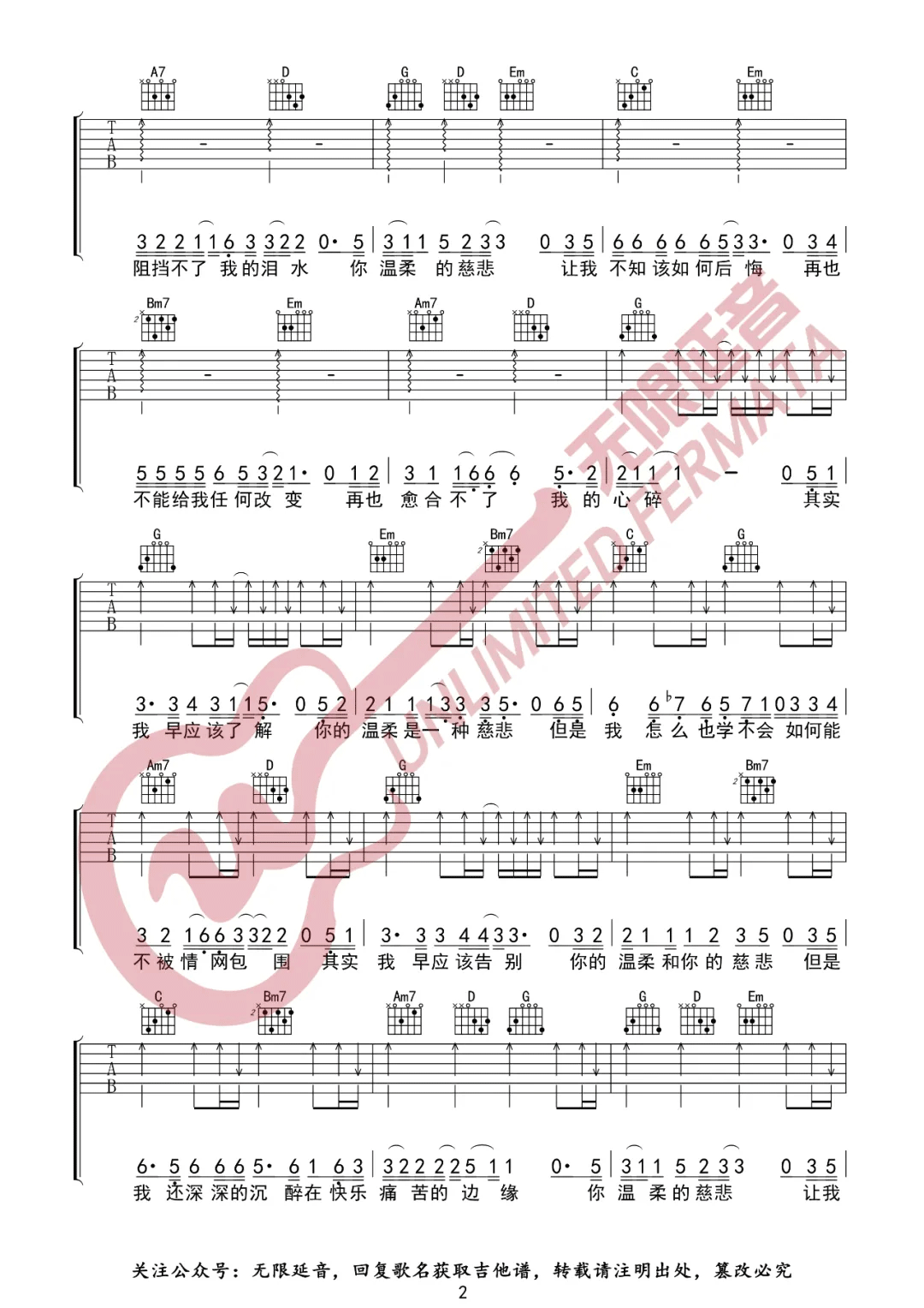 当前位置:琴谱网>吉他弹唱>温柔的慈悲