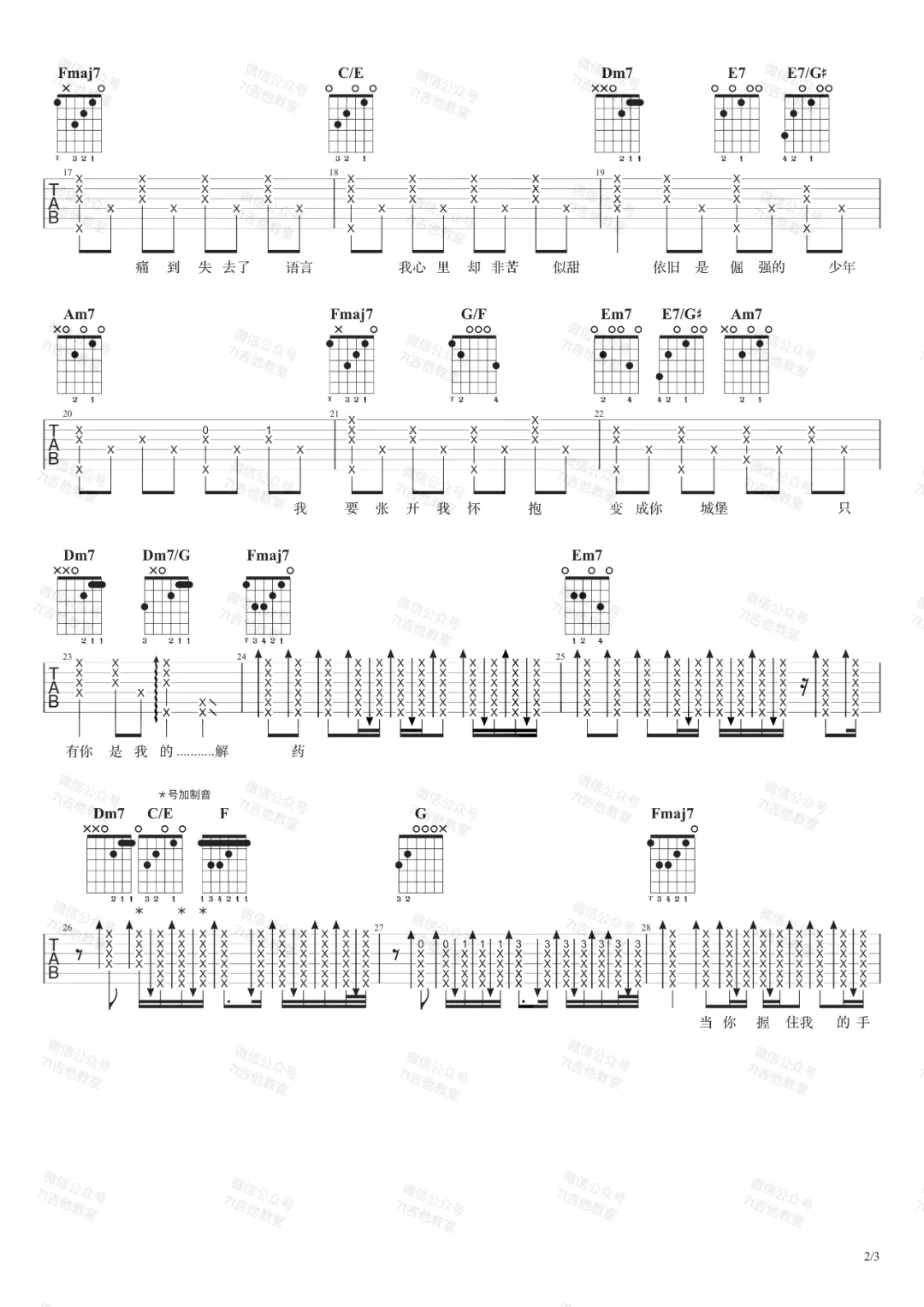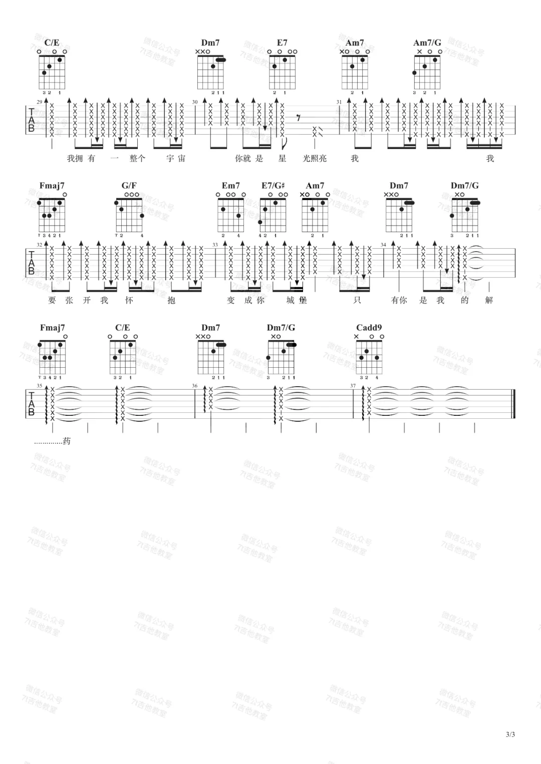 曲谱介绍: 队长《予你》吉他弹唱谱,采用C调指法编配原版,共有3张高清图谱。