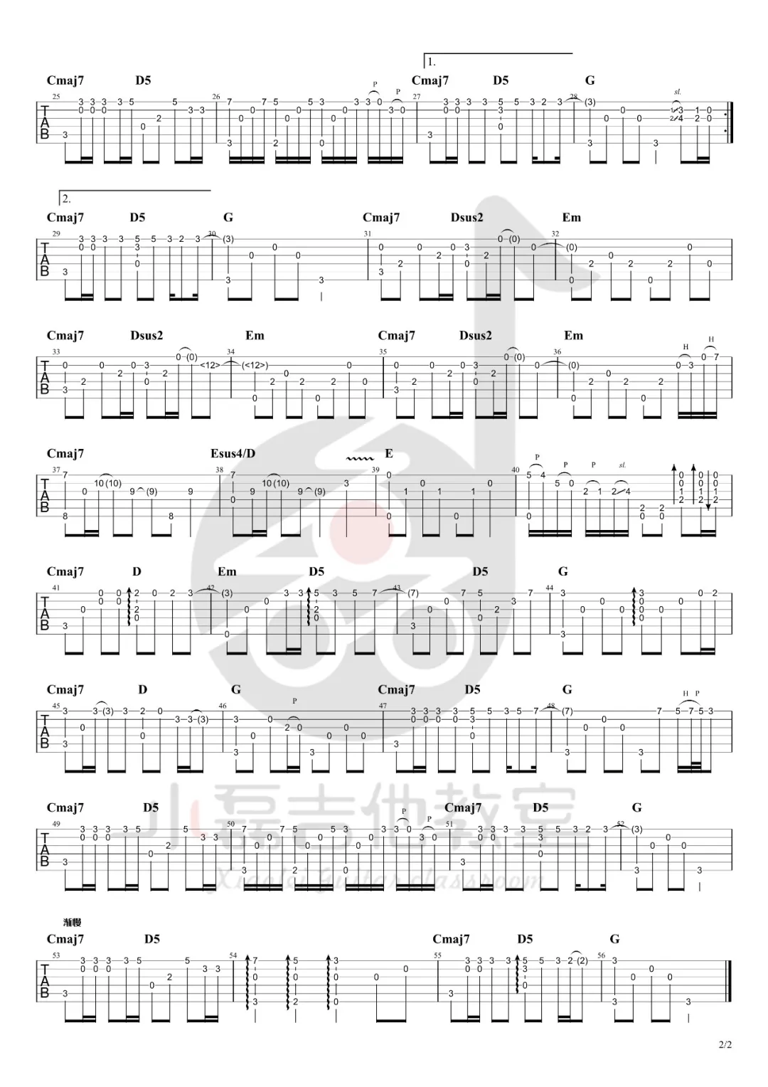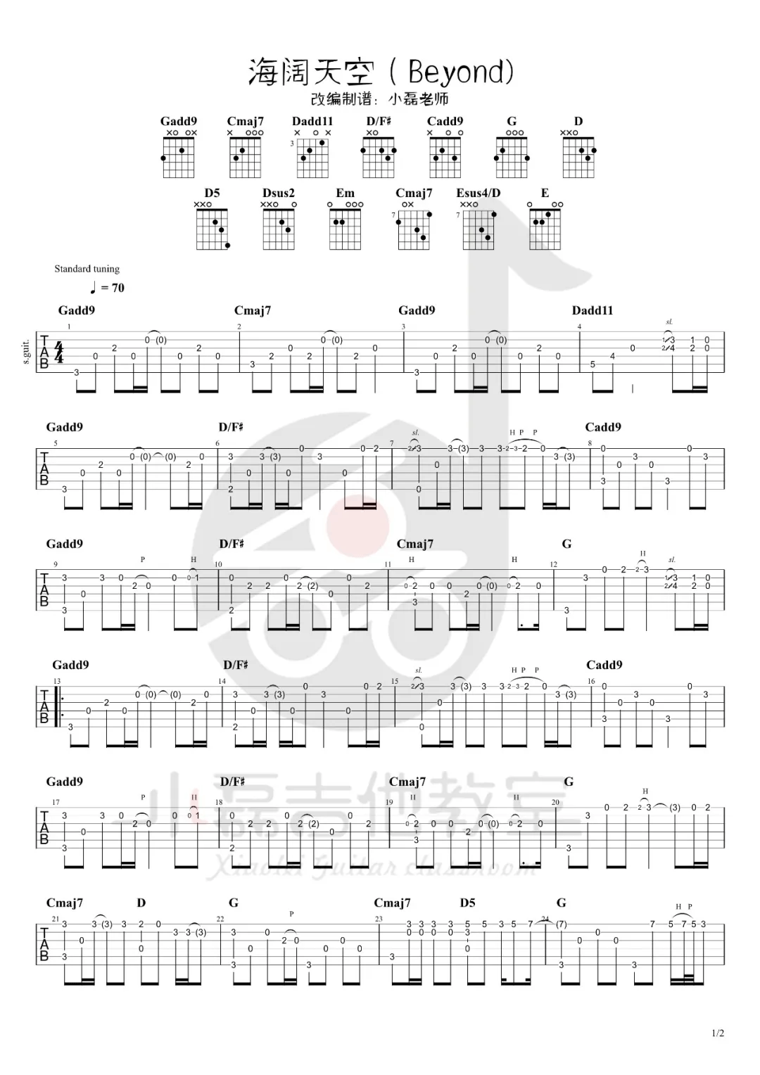 曲谱介绍: Beyond《海阔天空》吉他独奏谱,共有2张高清图谱,免翻页排版设计。