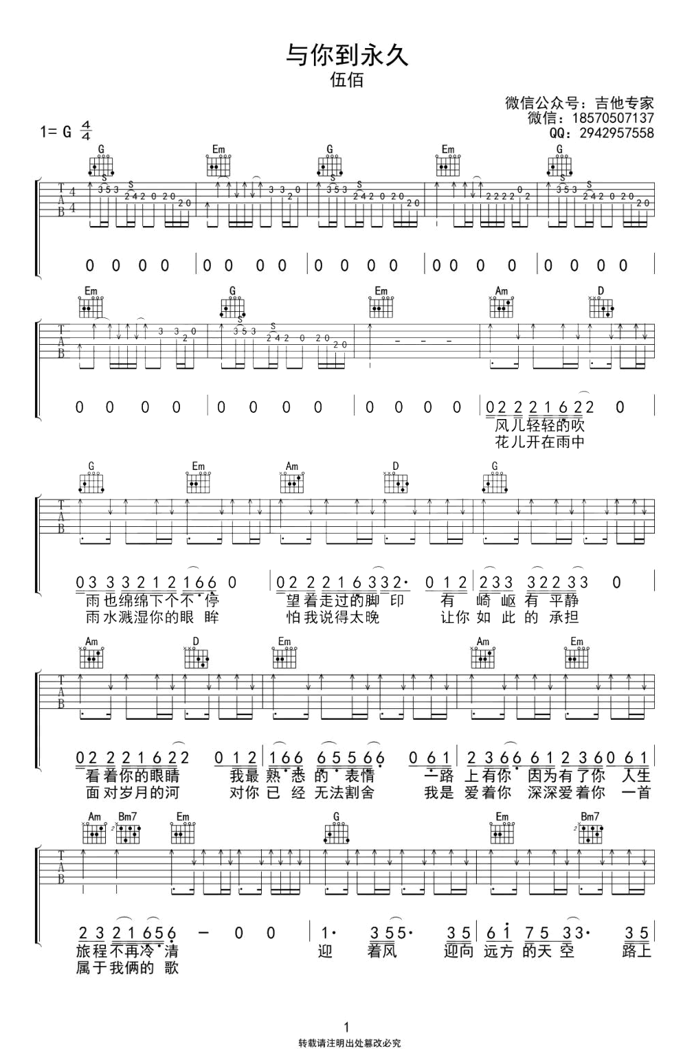 与你到永久吉他谱 - 伍佰 - G调吉他弹唱谱