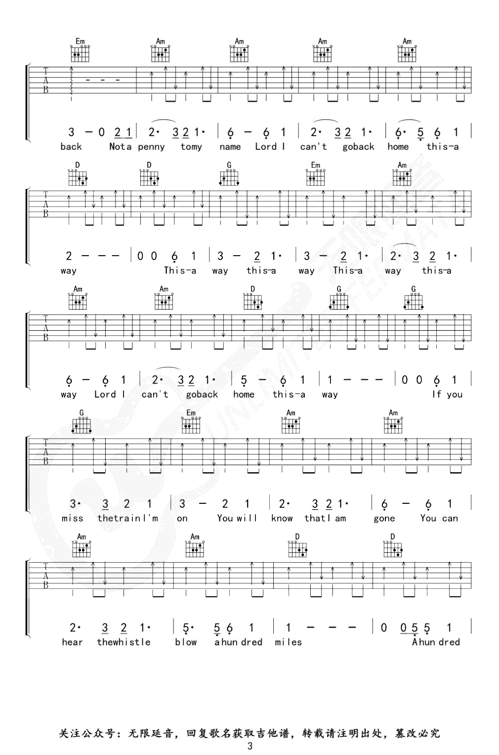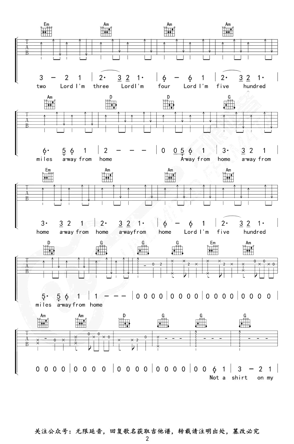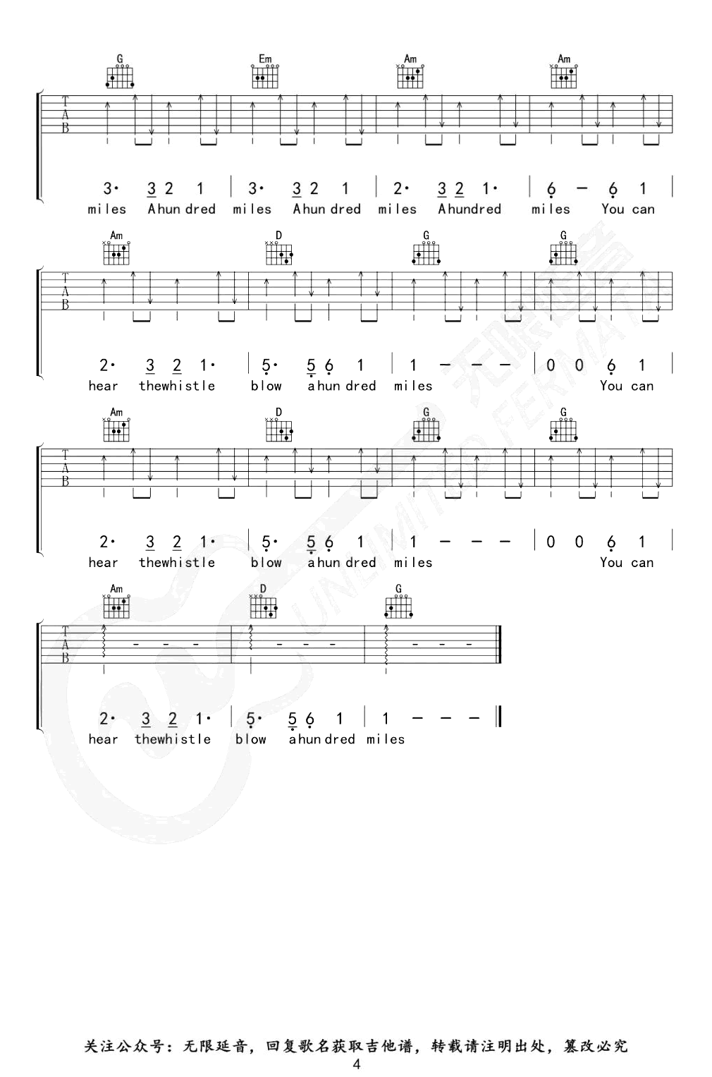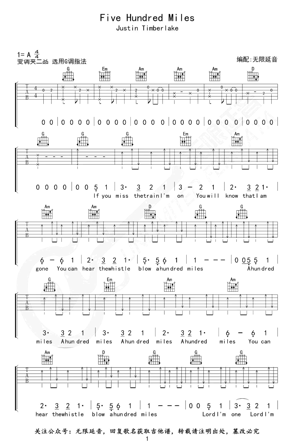 曲谱介绍: 500 Mile吉他谱,欧美经典民谣,电影《醉乡民谣》主题曲。Five Hundred Miles ​吉他弹唱谱,原调A,选用G调指法,变调夹夹二品。完整编配共四张图片六线谱。