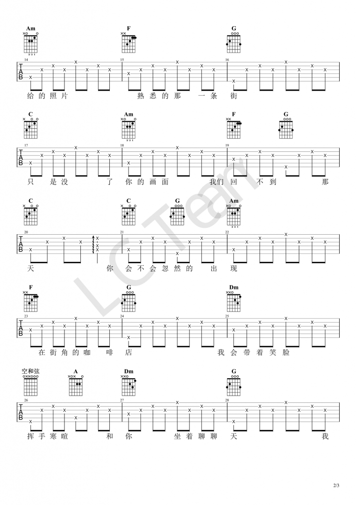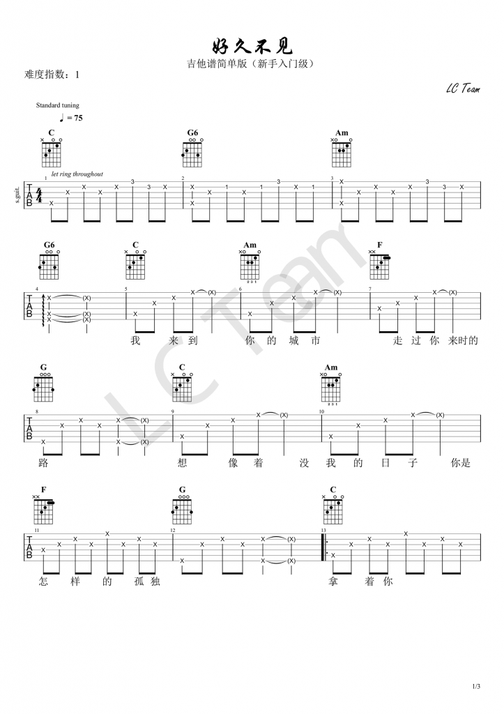 曲谱介绍: 陈奕迅《好久不见》吉他独奏谱,共有3张高清图谱。