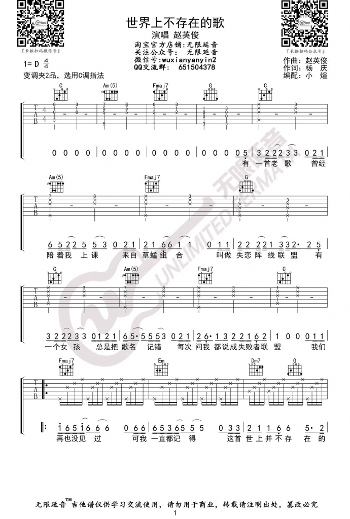 曲谱介绍: 赵英俊的一首好听的创作歌曲,世界上不存在的歌吉他谱,电影【火锅英雄】的主题曲,歌曲选用C调指法,变调夹二品,三张弹唱图片谱。音乐人最大的愿望就是希望大家能喜欢他的歌曲,让我们再弹唱一曲赵英俊的歌。