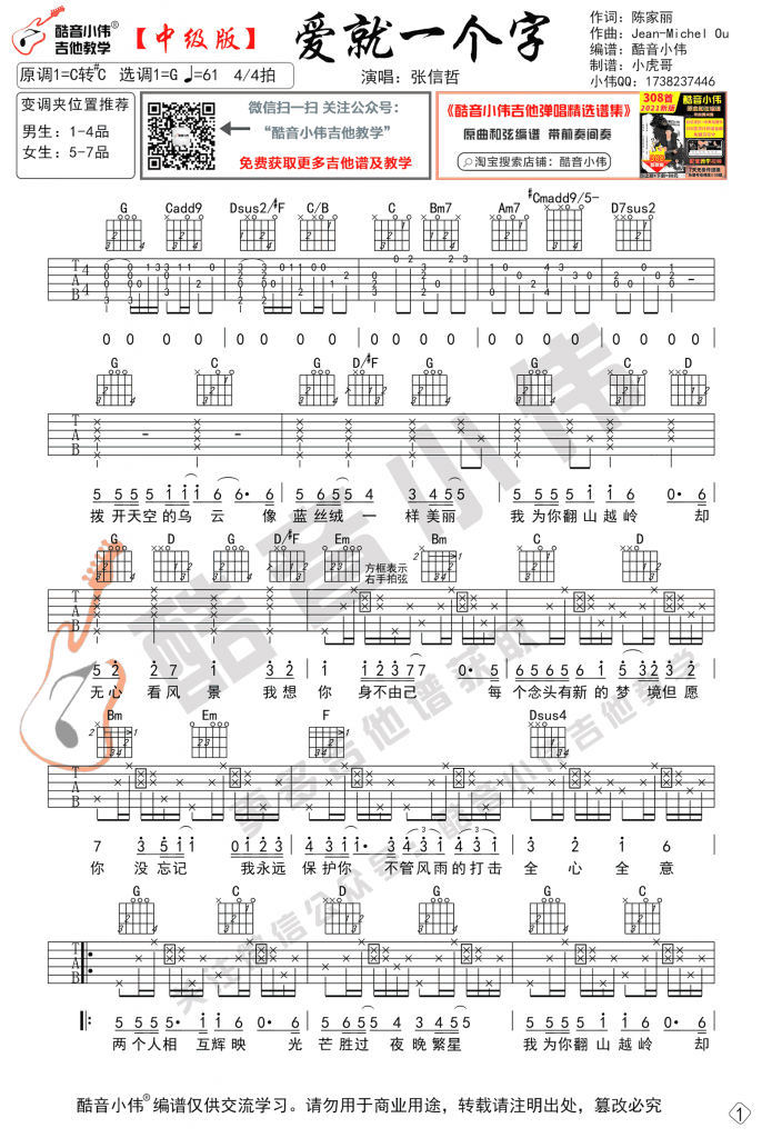 当前位置:琴谱网>吉他弹唱>爱就一个字