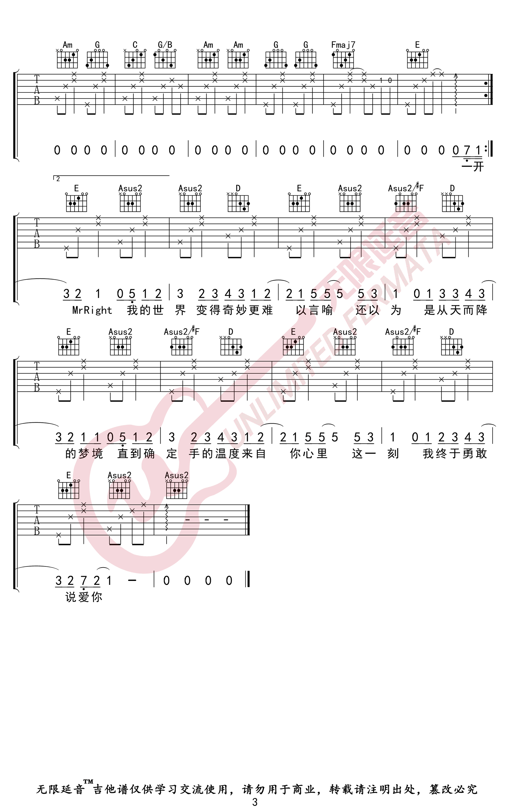 曲谱介绍: 沈以诚/蔡依林《说爱你》吉他弹唱谱,采用A调指法编配,共有3张高清图谱。