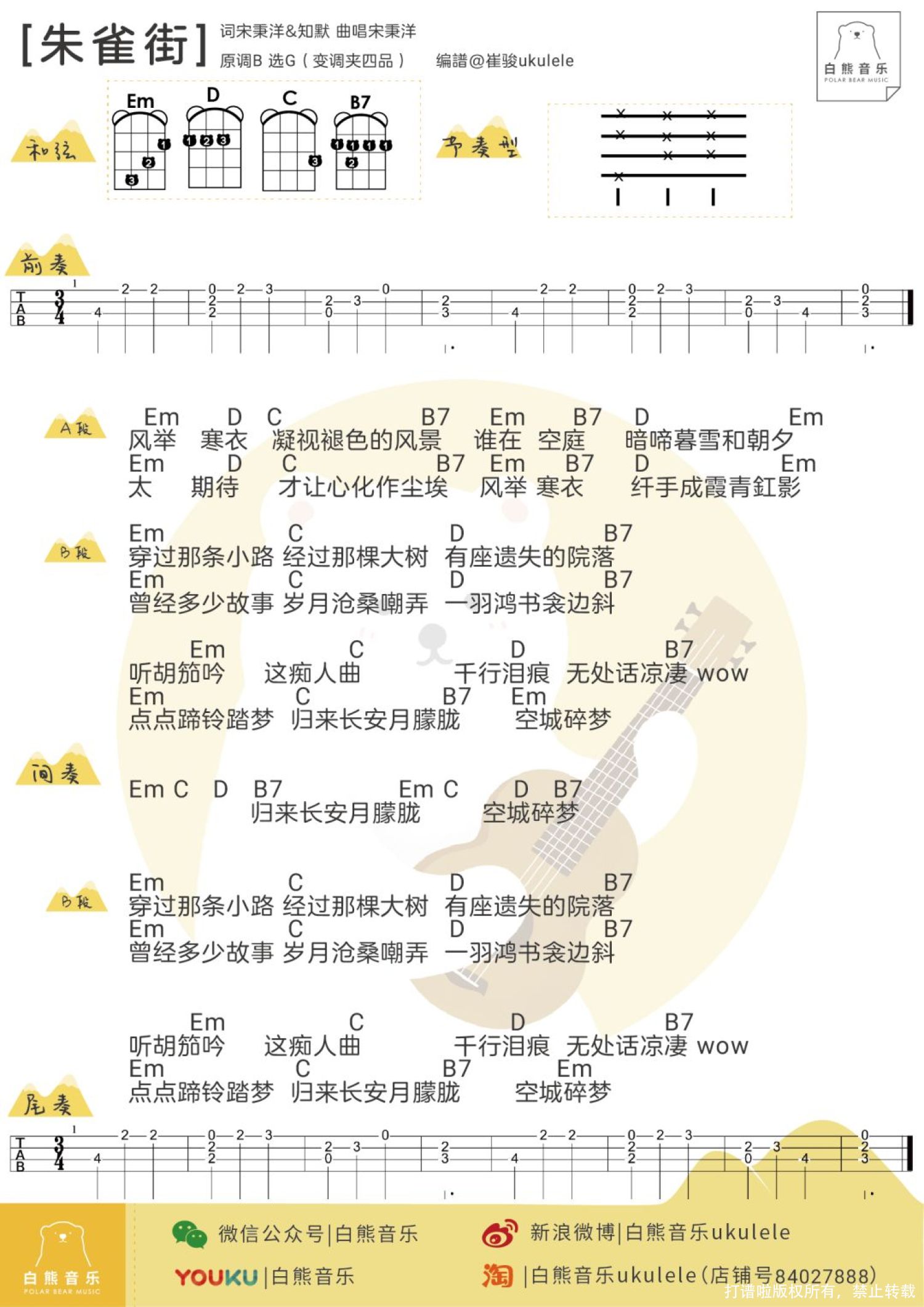 曲谱介绍: 《朱雀街》尤克里里弹唱谱