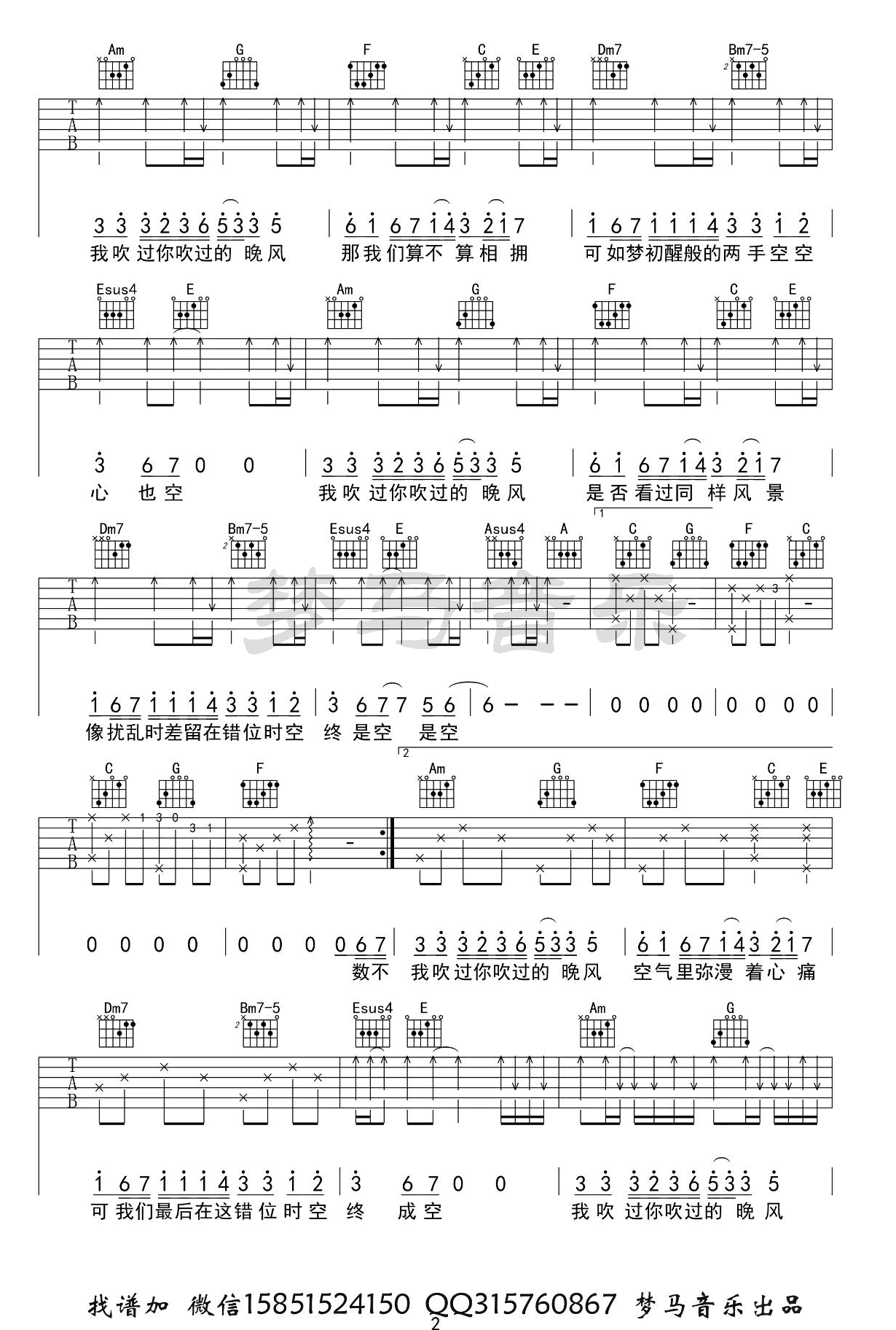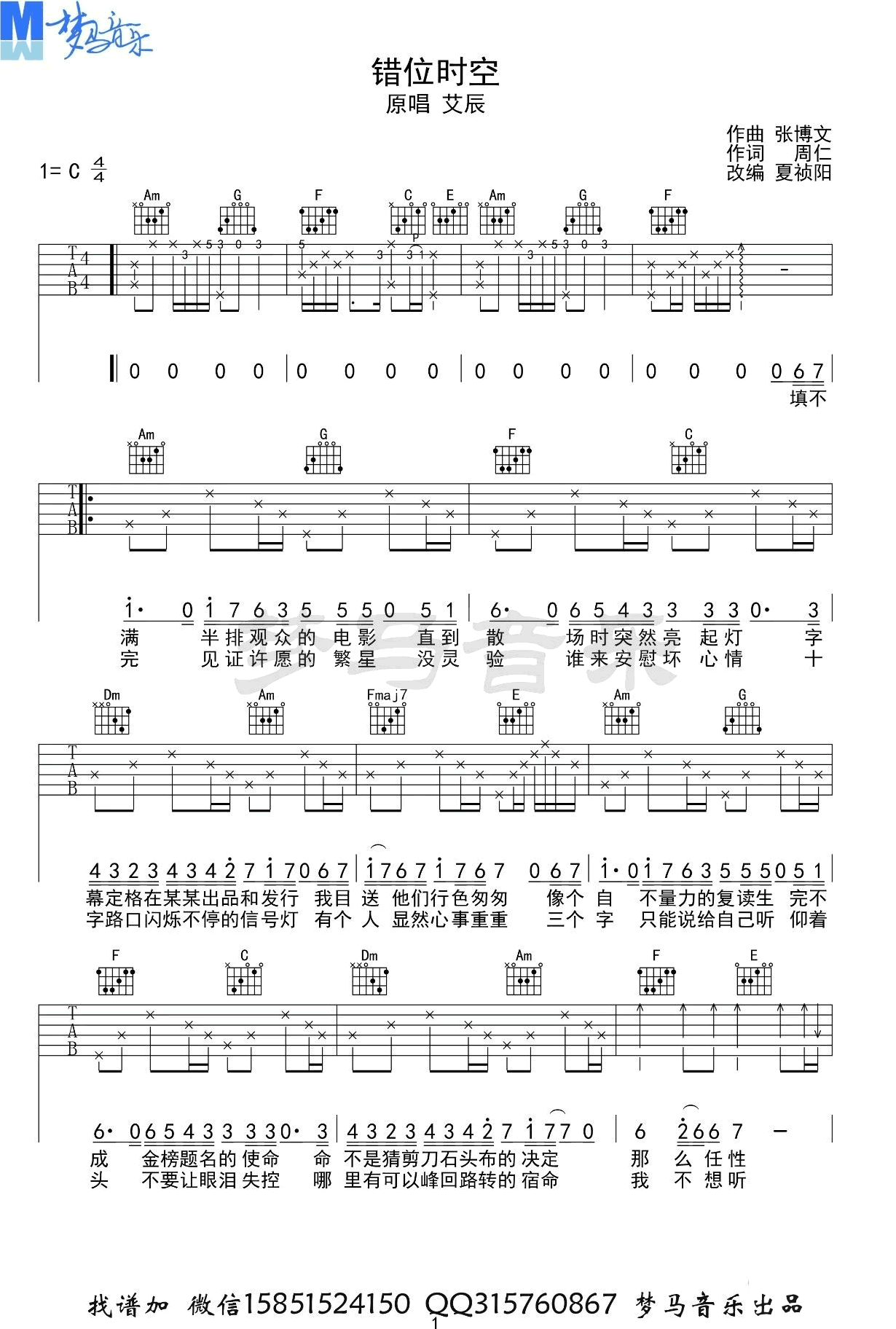 曲谱介绍: 艾辰《错位时空》吉他弹唱谱,采用C调指法编配,共有3张高清图谱。