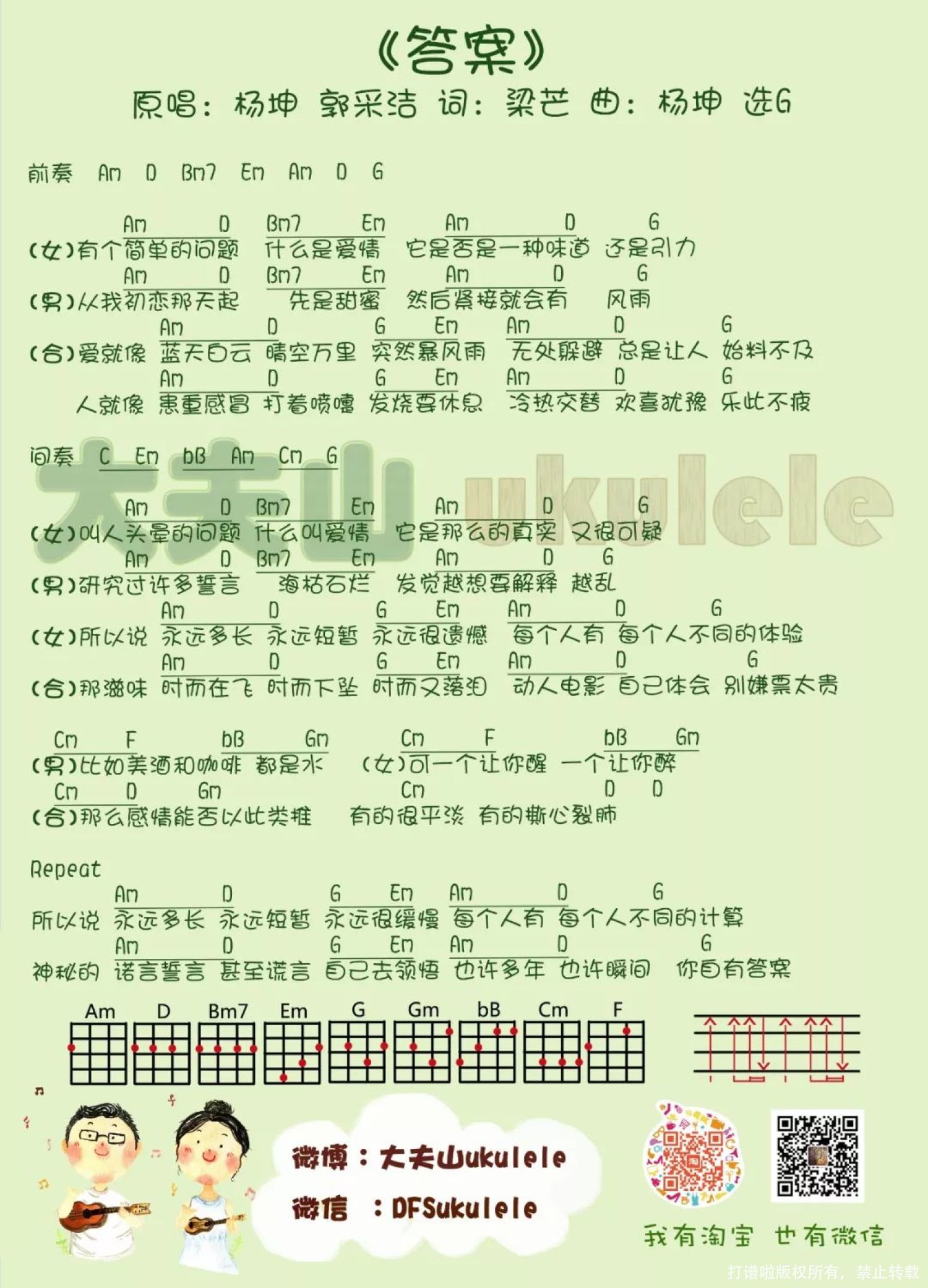 曲谱介绍: 《答案》尤克里里弹唱谱