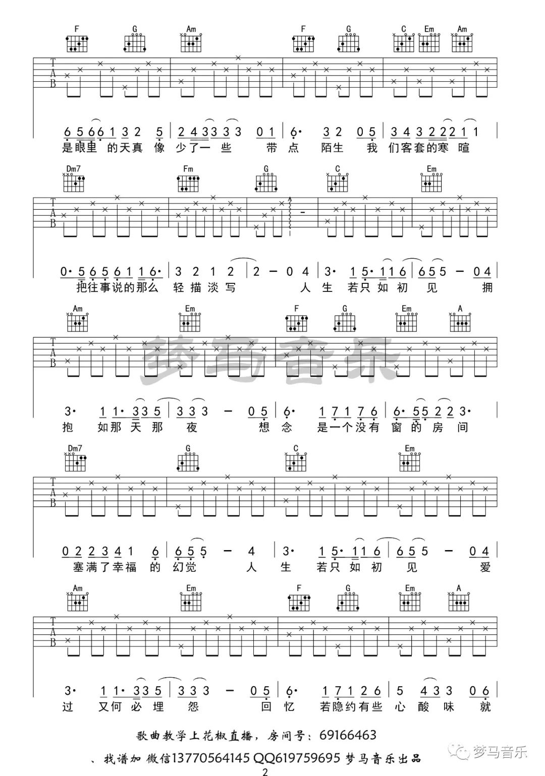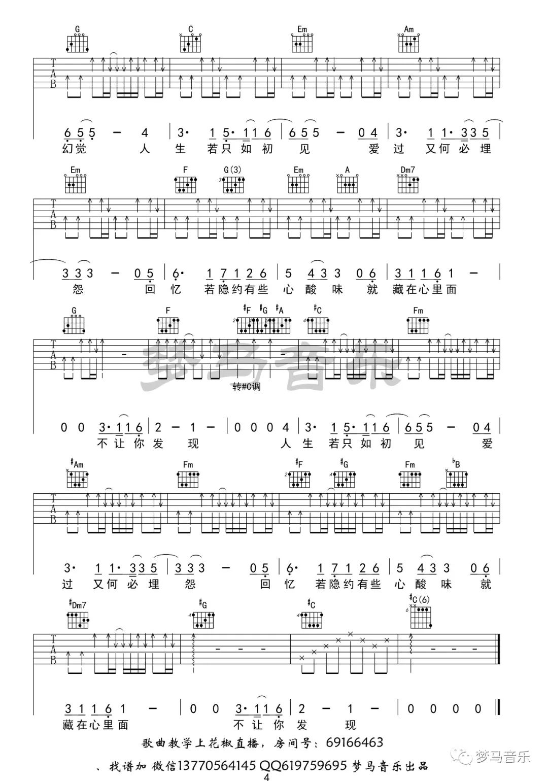 曲谱介绍: 子硕《只如初见》吉他弹唱谱,采用C调指法编配原版,共有4张高清图谱。
