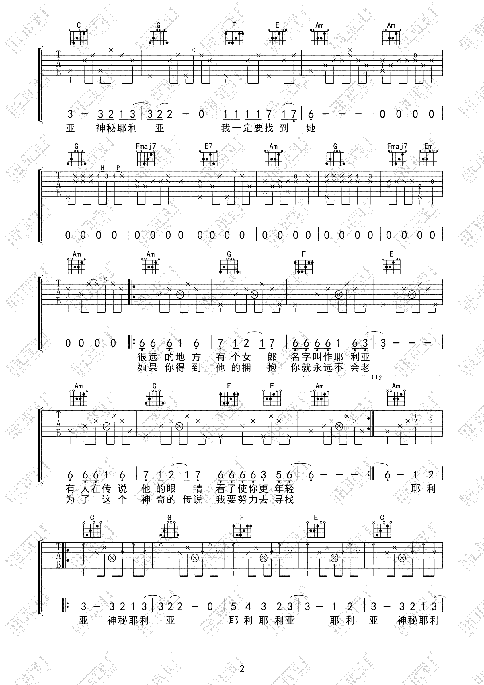 当前位置:琴谱网>吉他弹唱>耶利亚女郎
