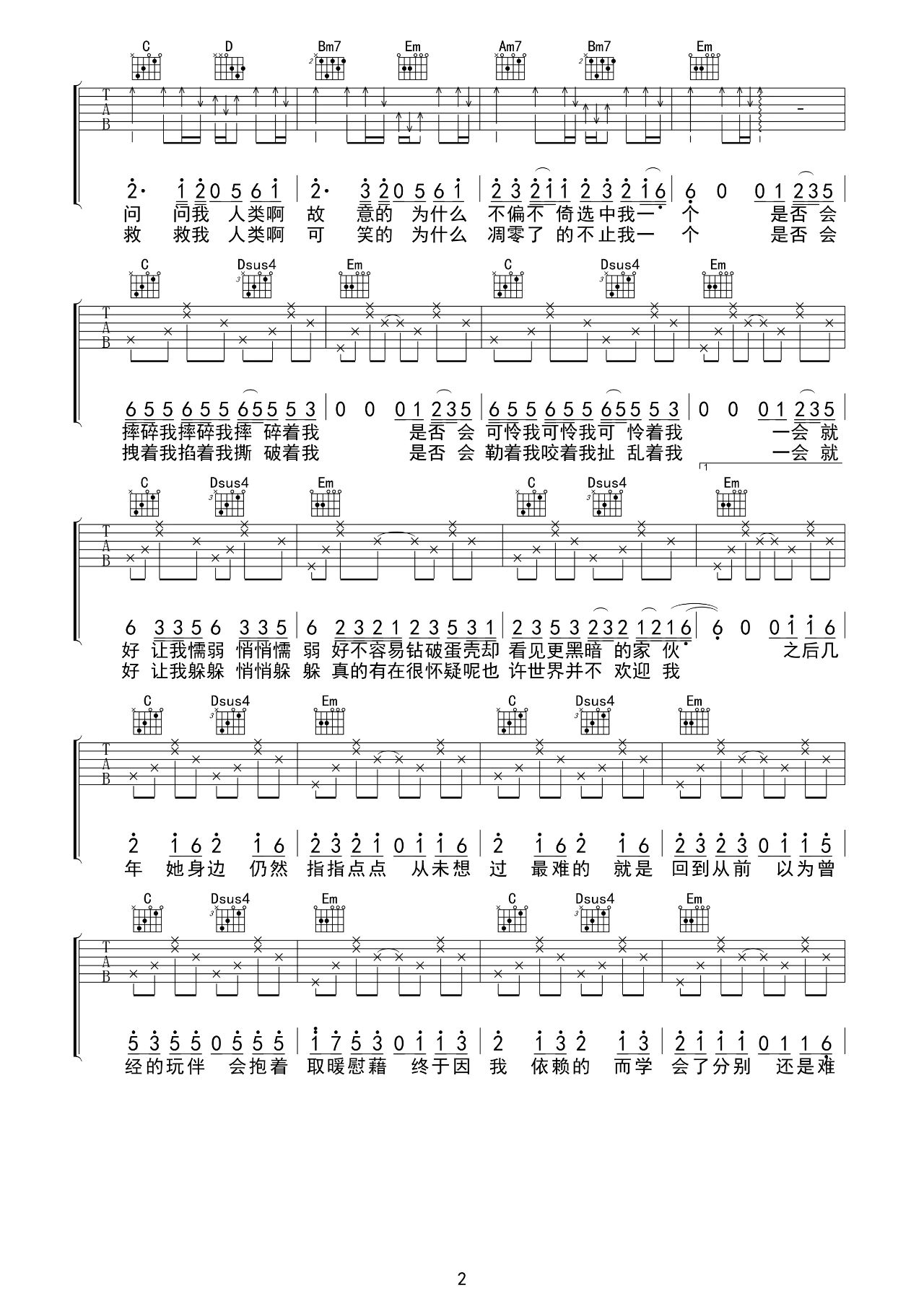 曲谱介绍: 太一《负重一万斤长大》吉他弹唱谱,采用G调指法编配,共有3张高清图谱。