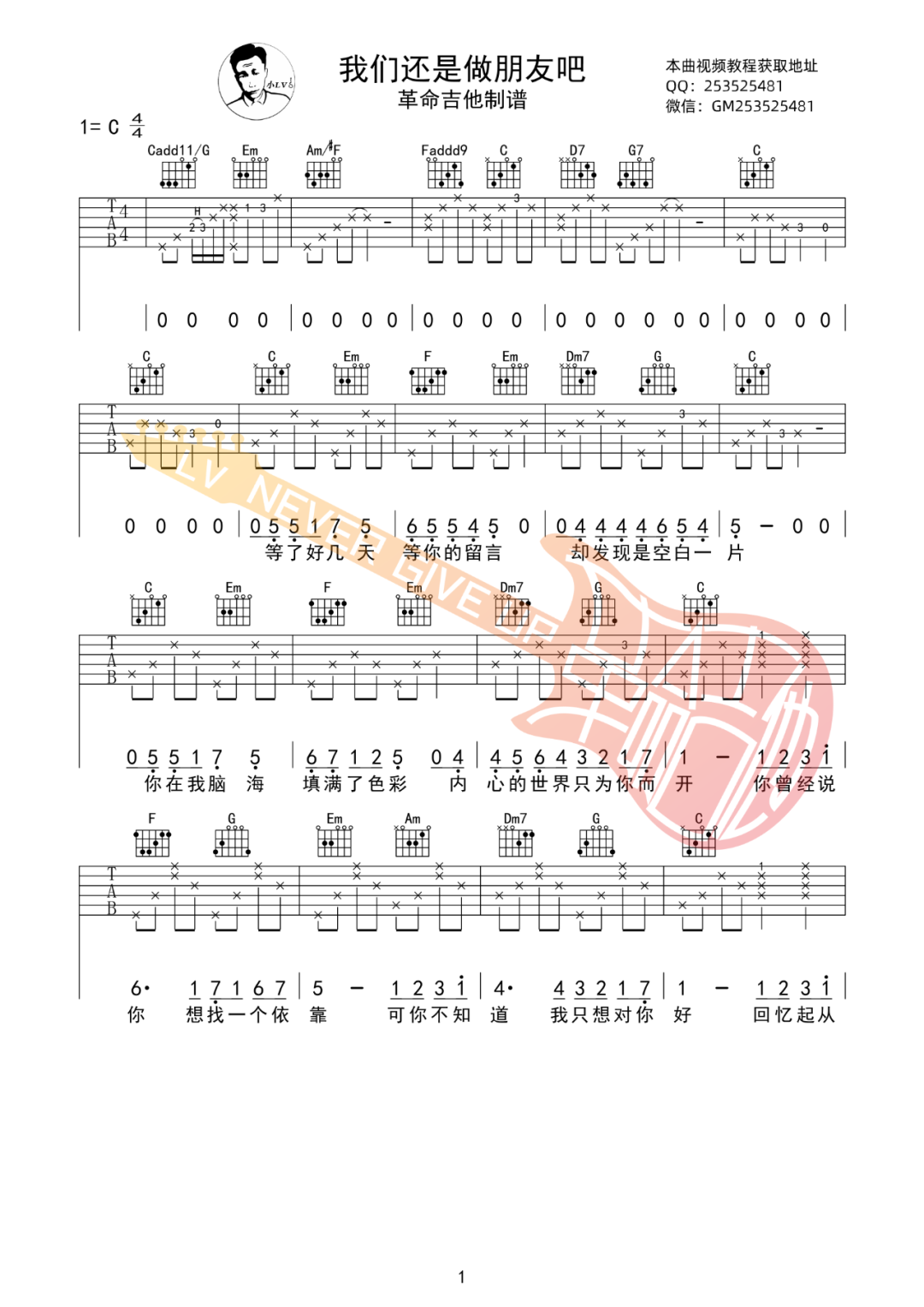 曲谱介绍: 杨振宇《我们还是做朋友吧》吉他弹唱谱,采用C调指法编配,共有3张高清图谱。