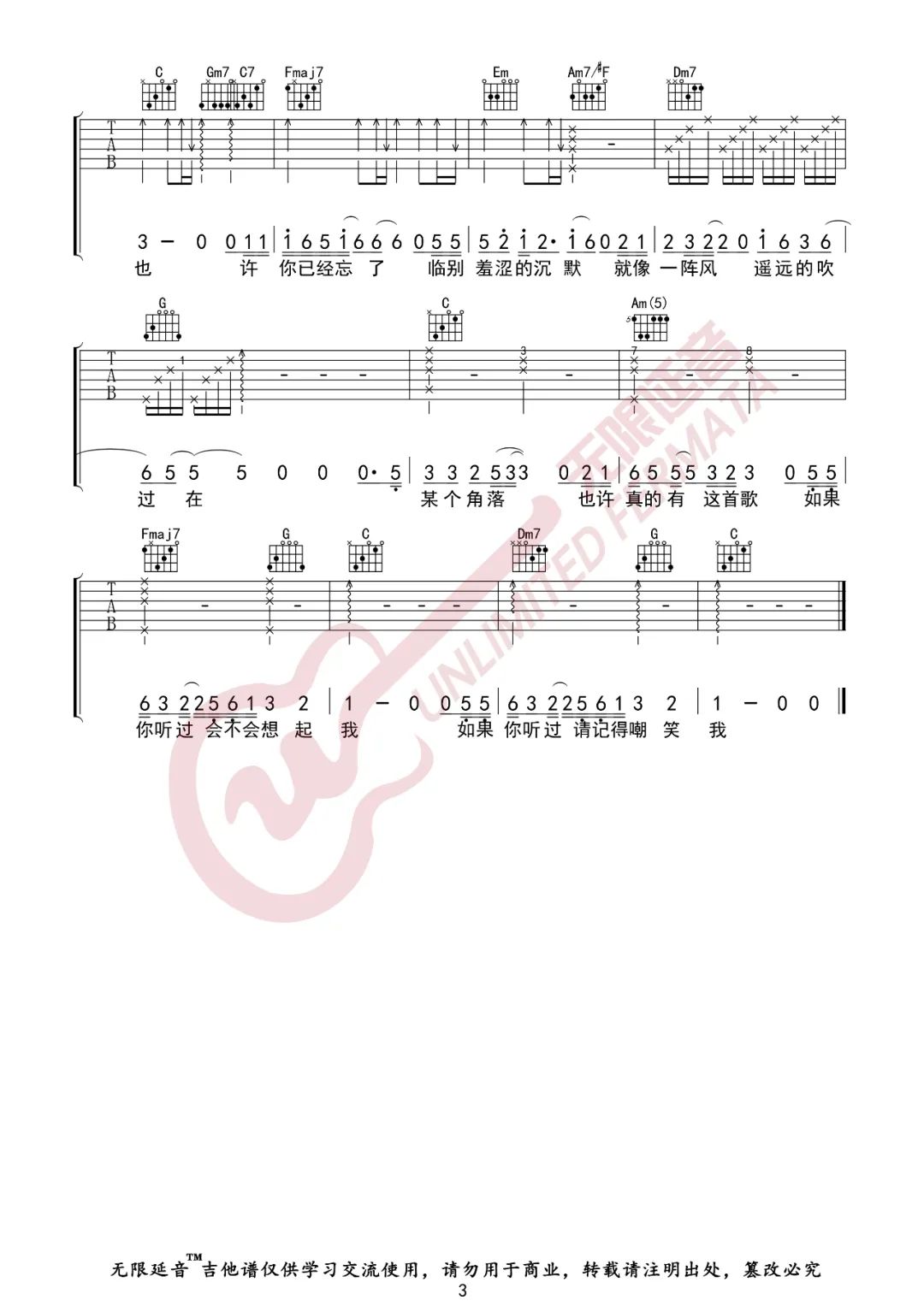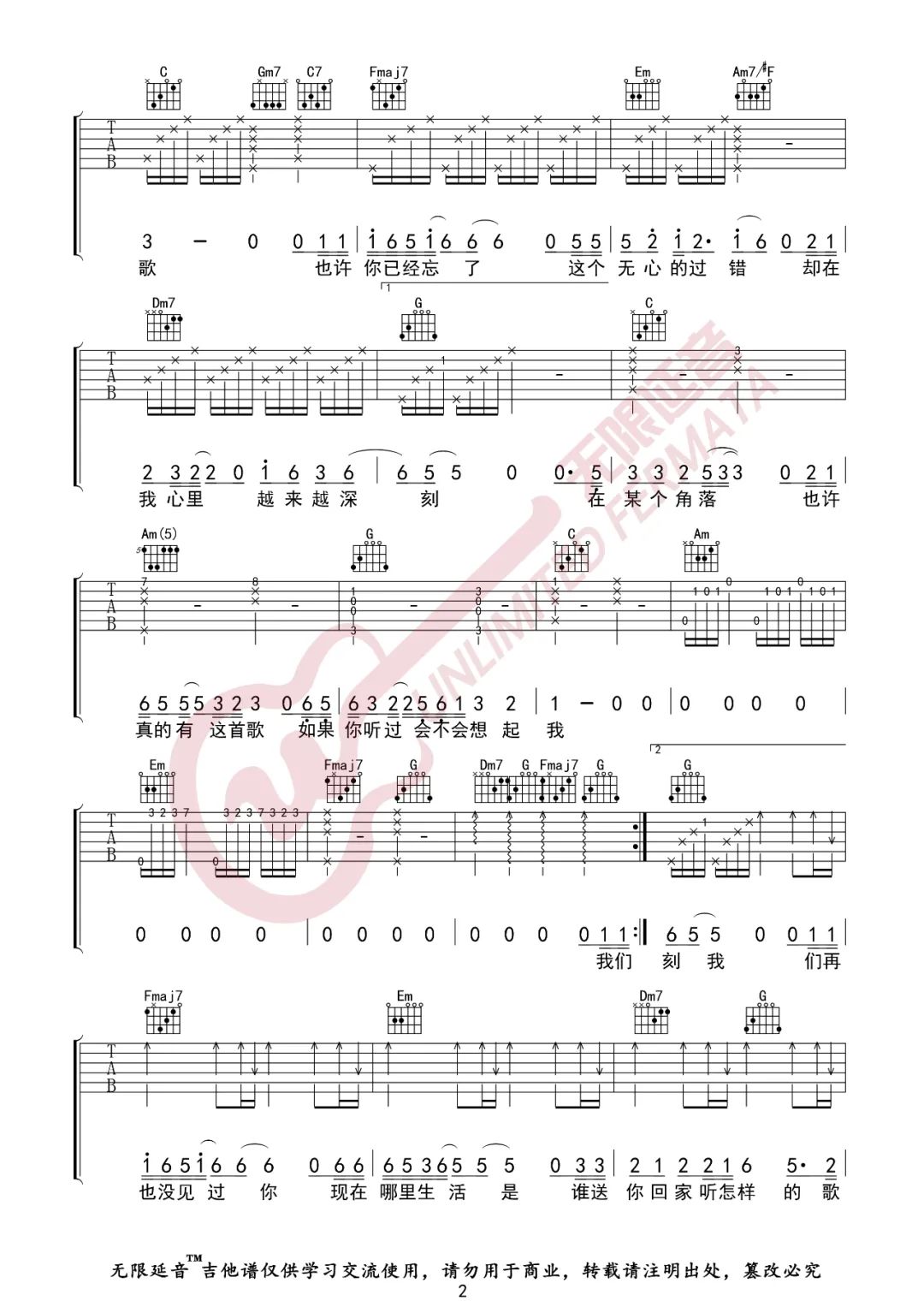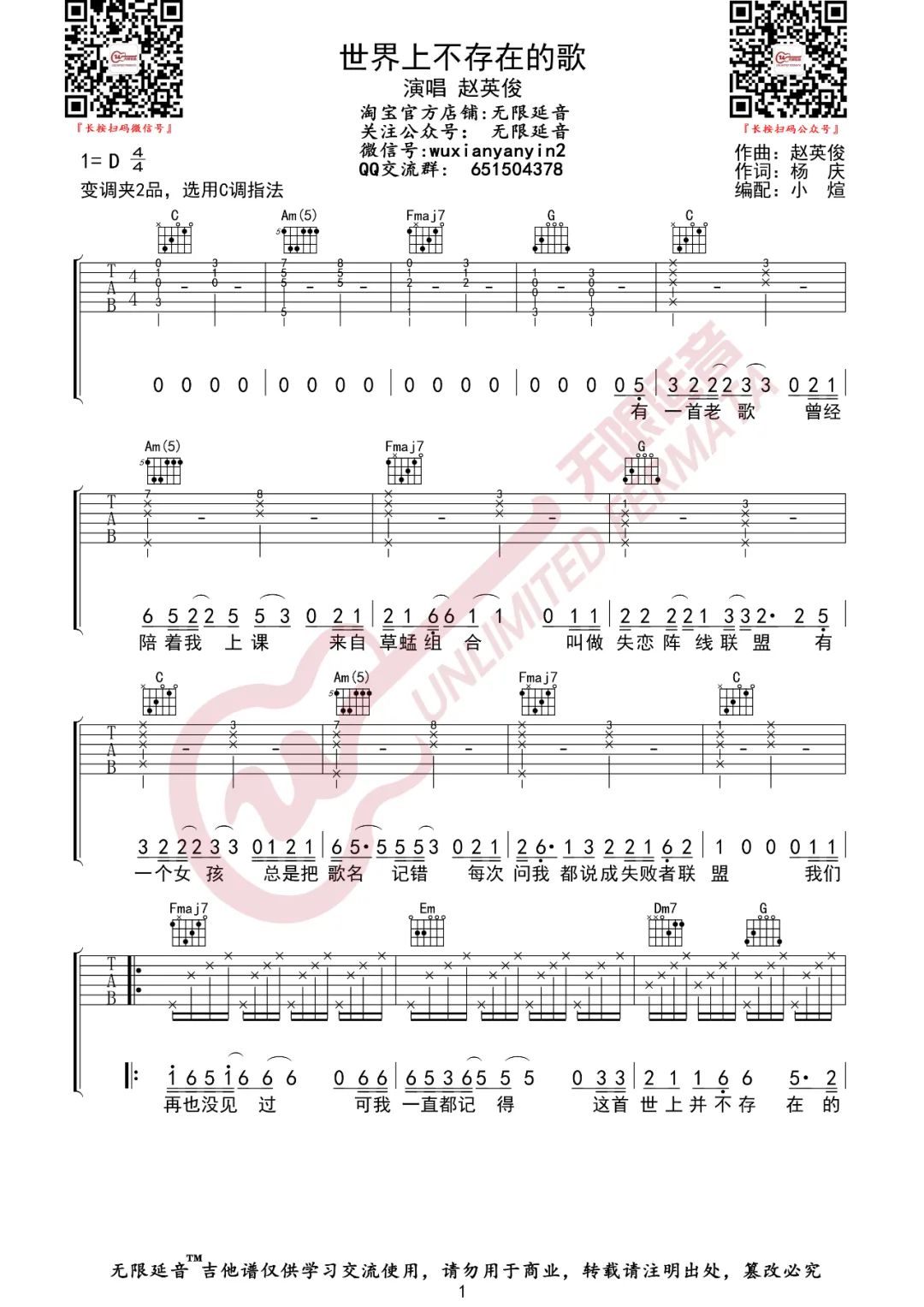 曲谱介绍: 赵英俊《世界上不存在的歌》吉他弹唱谱,采用C调指法编配,共有3张高清图谱。