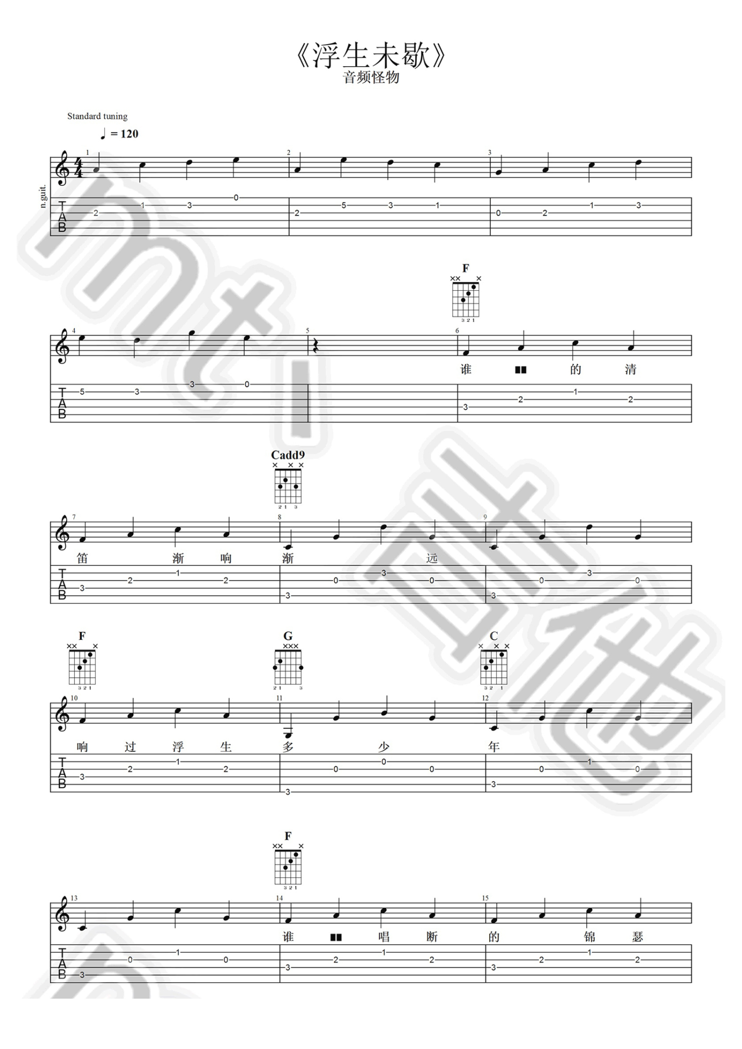 浮生未歇吉他谱 - 音频怪物 - 吉他弹唱谱
