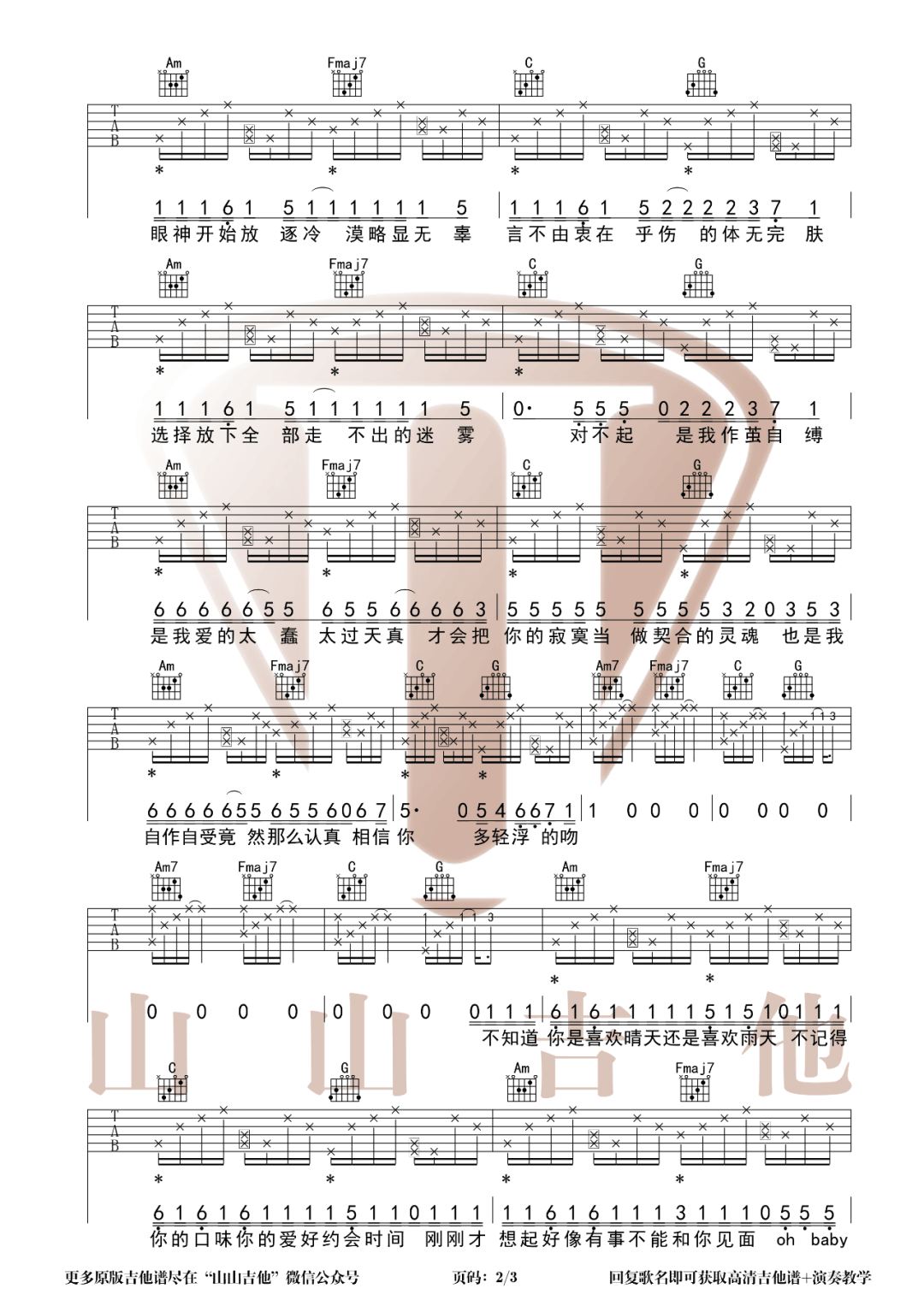 当前位置:琴谱网>吉他弹唱>清空