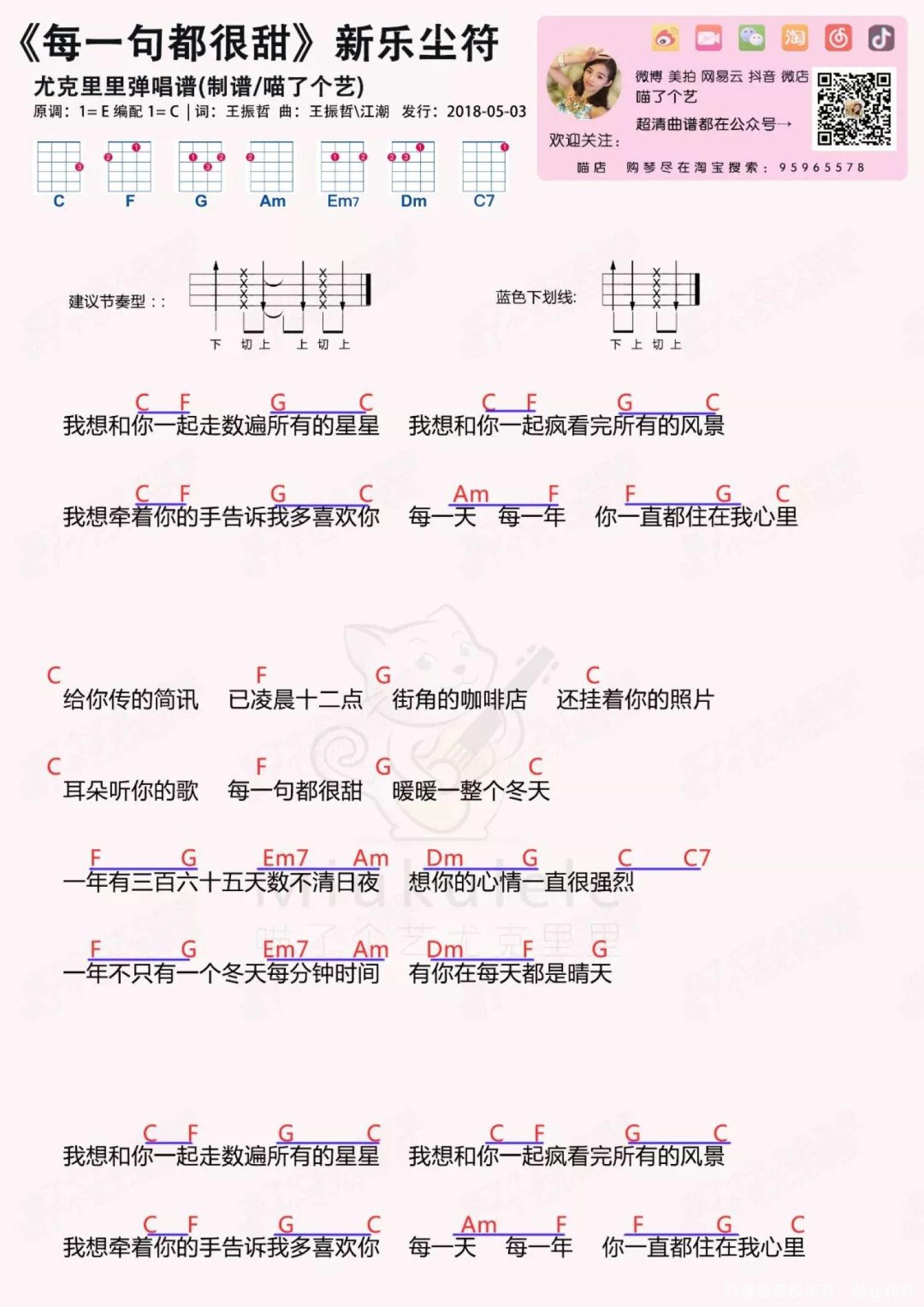 每一句都很甜尤克里里谱 - 新乐尘符