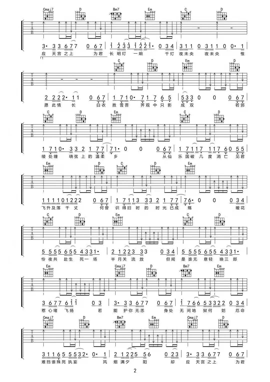 曲谱介绍: 弦森《千灯愿》吉他弹唱谱,采用G调指法编配原版,共有3张高清图谱。