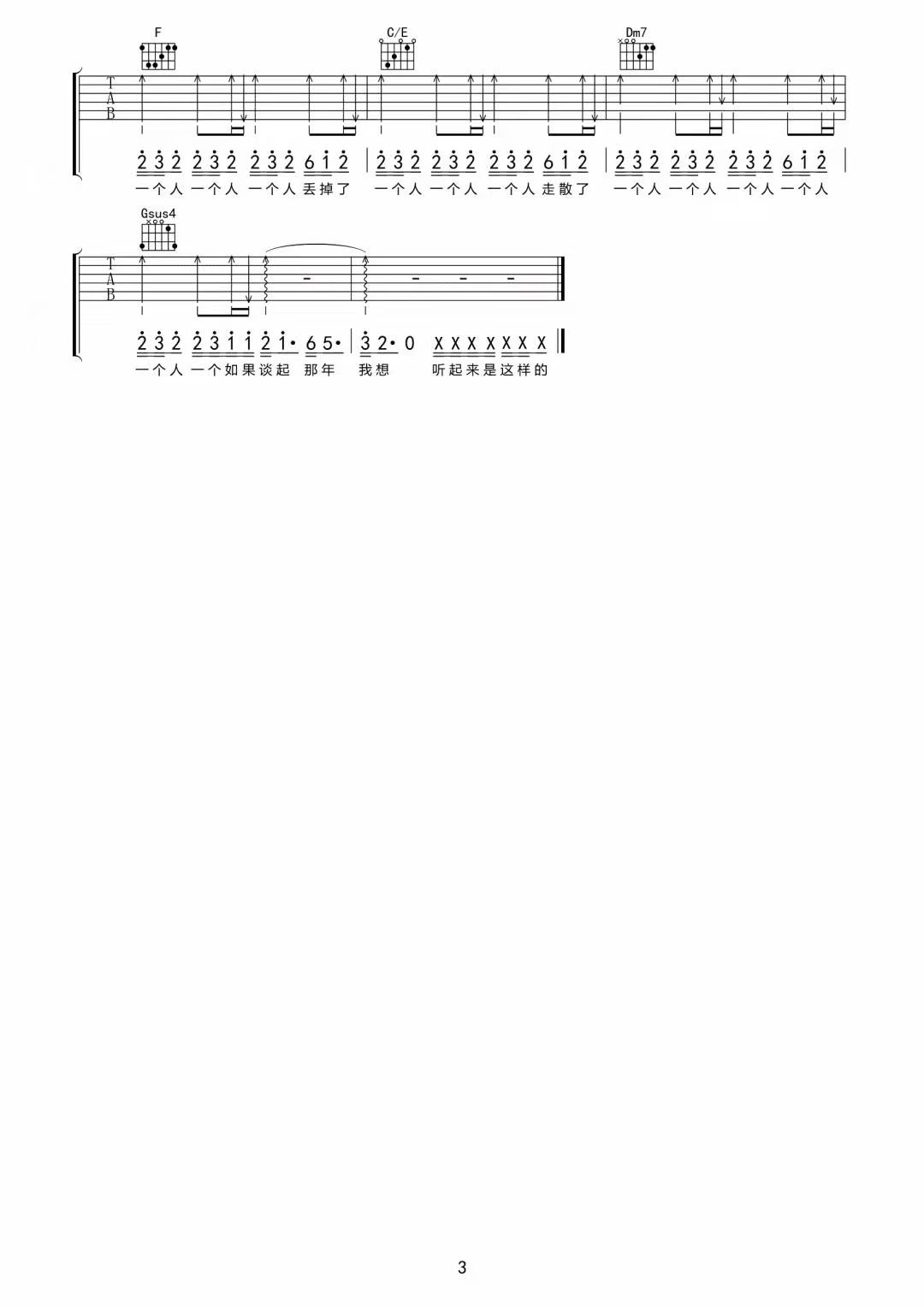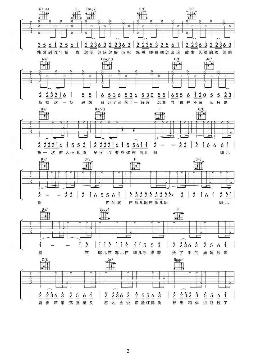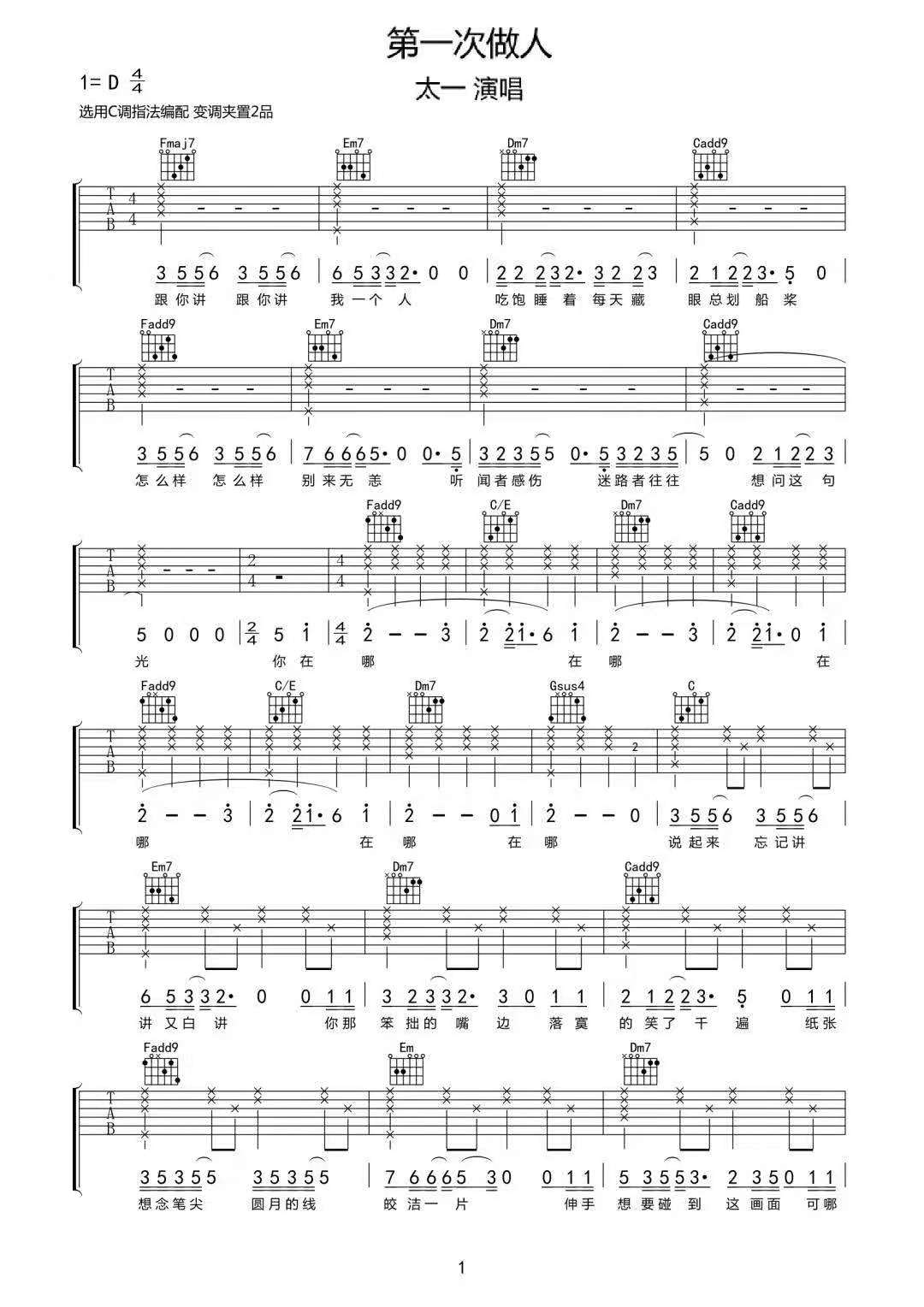 曲谱介绍: 太一《第一次做人》吉他弹唱谱,采用C调指法编配原版,共有3张高清图谱。
