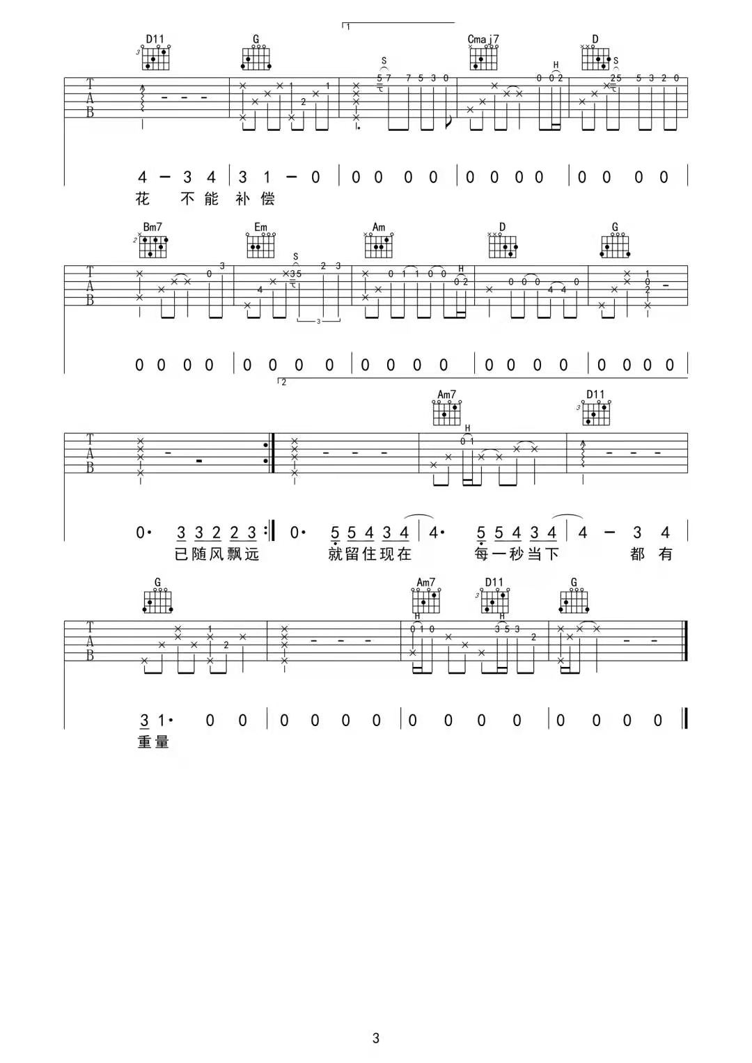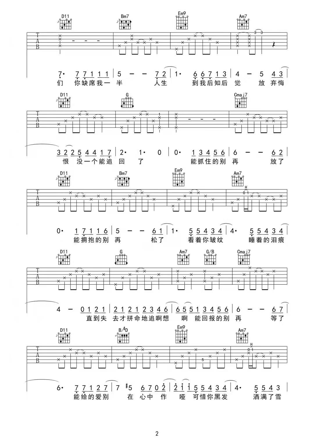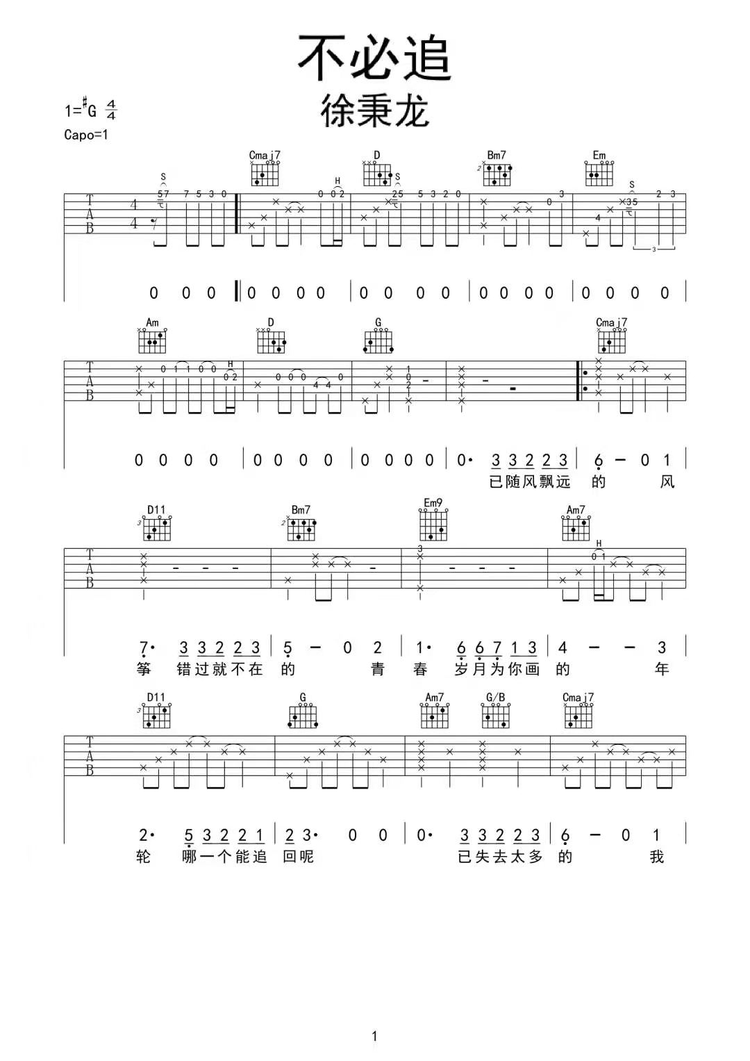 曲谱介绍: 徐秉龙《不必追》吉他弹唱谱,采用G调指法编配原版,共有3张高清图谱。