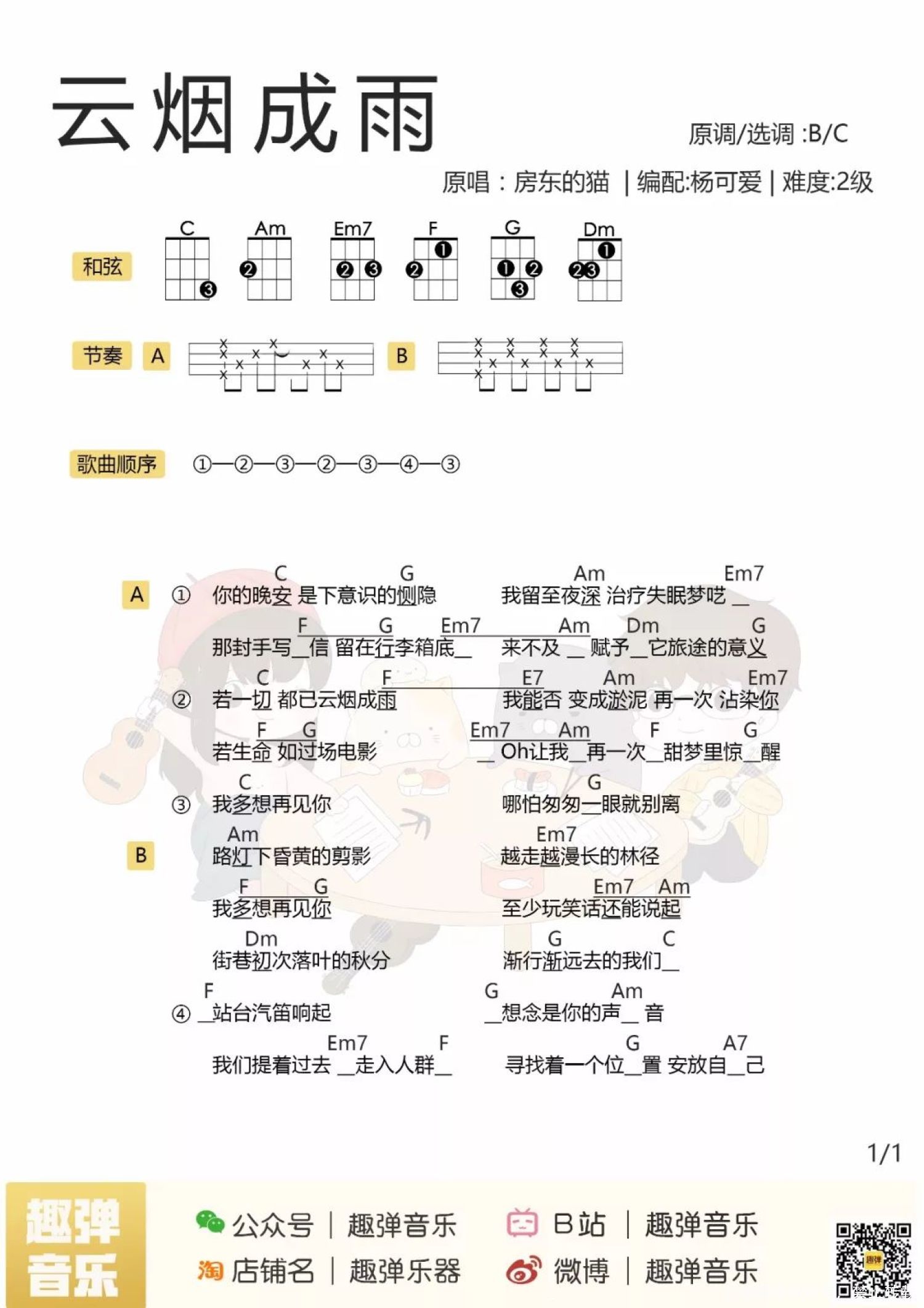云烟成雨尤克里里谱 - 房东的猫