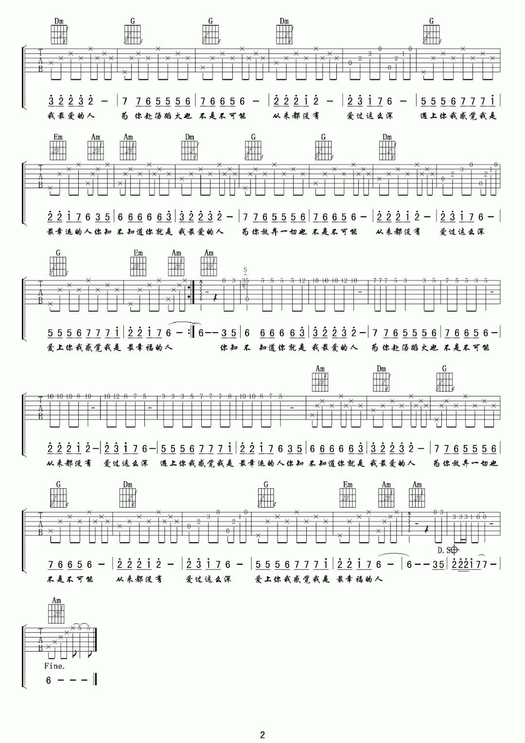 曲谱介绍: 曾春年《最幸福的人》吉他弹唱谱,采用C调指法编配原版,共有2张高清图谱,免翻页排版设计。
