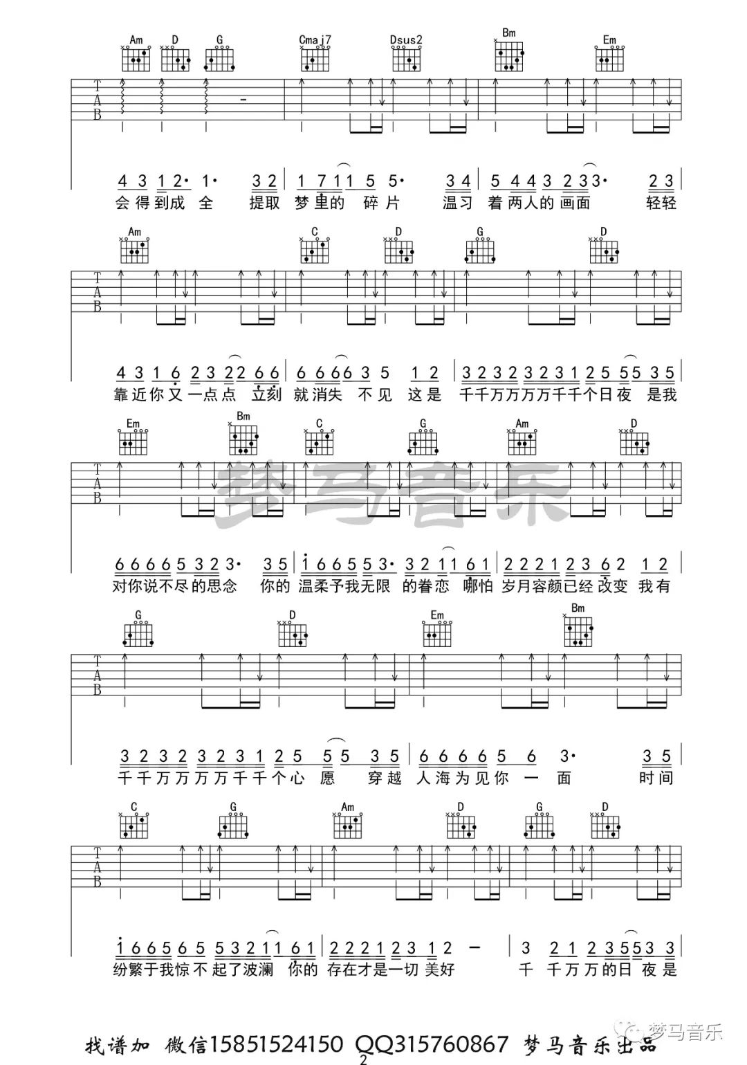 曲谱介绍: 深海鱼子酱《千千万万》吉他弹唱谱,采用G调指法编配原版,共有3张高清图谱。
