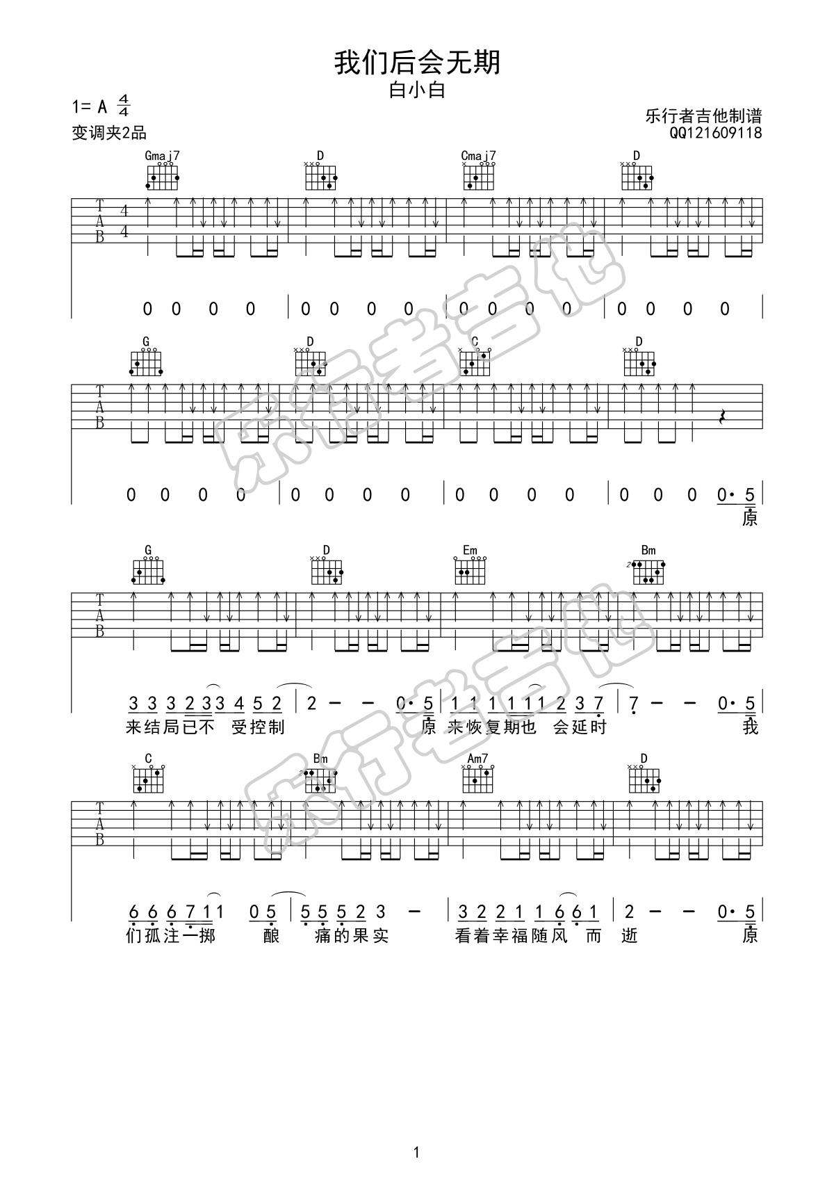曲谱介绍: 白小白《我们后会无期》吉他弹唱谱,采用G调指法编配原版,共有5张高清图谱。