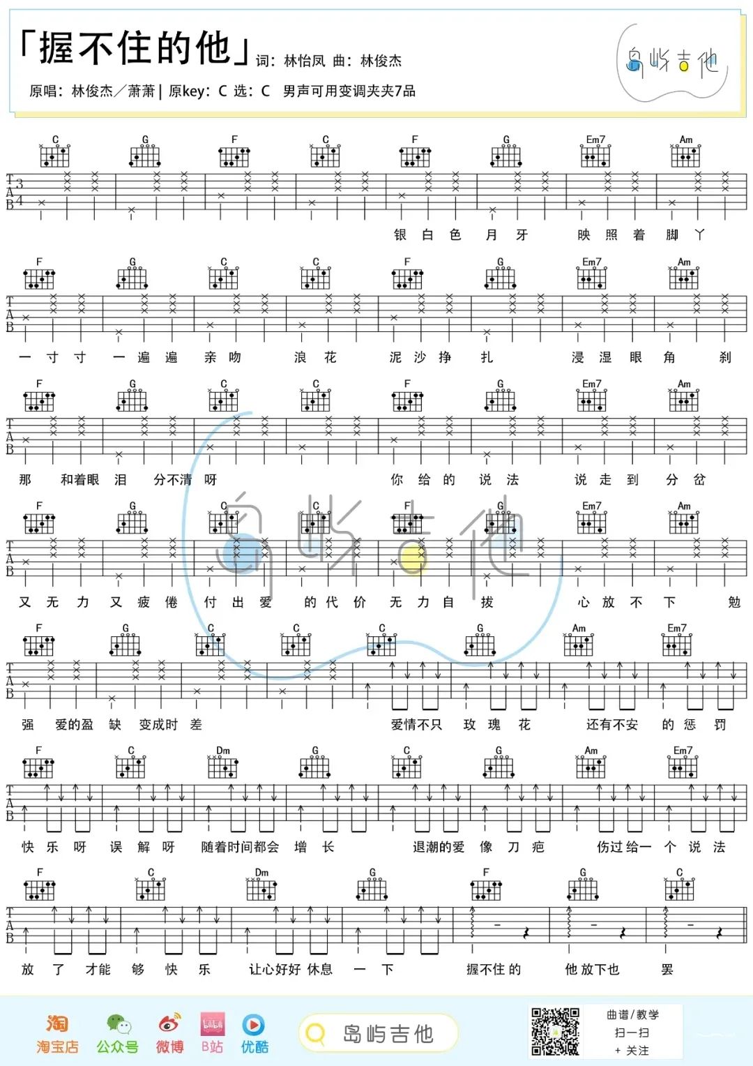 握不住的他吉他谱 - ​ - C调吉他弹唱谱