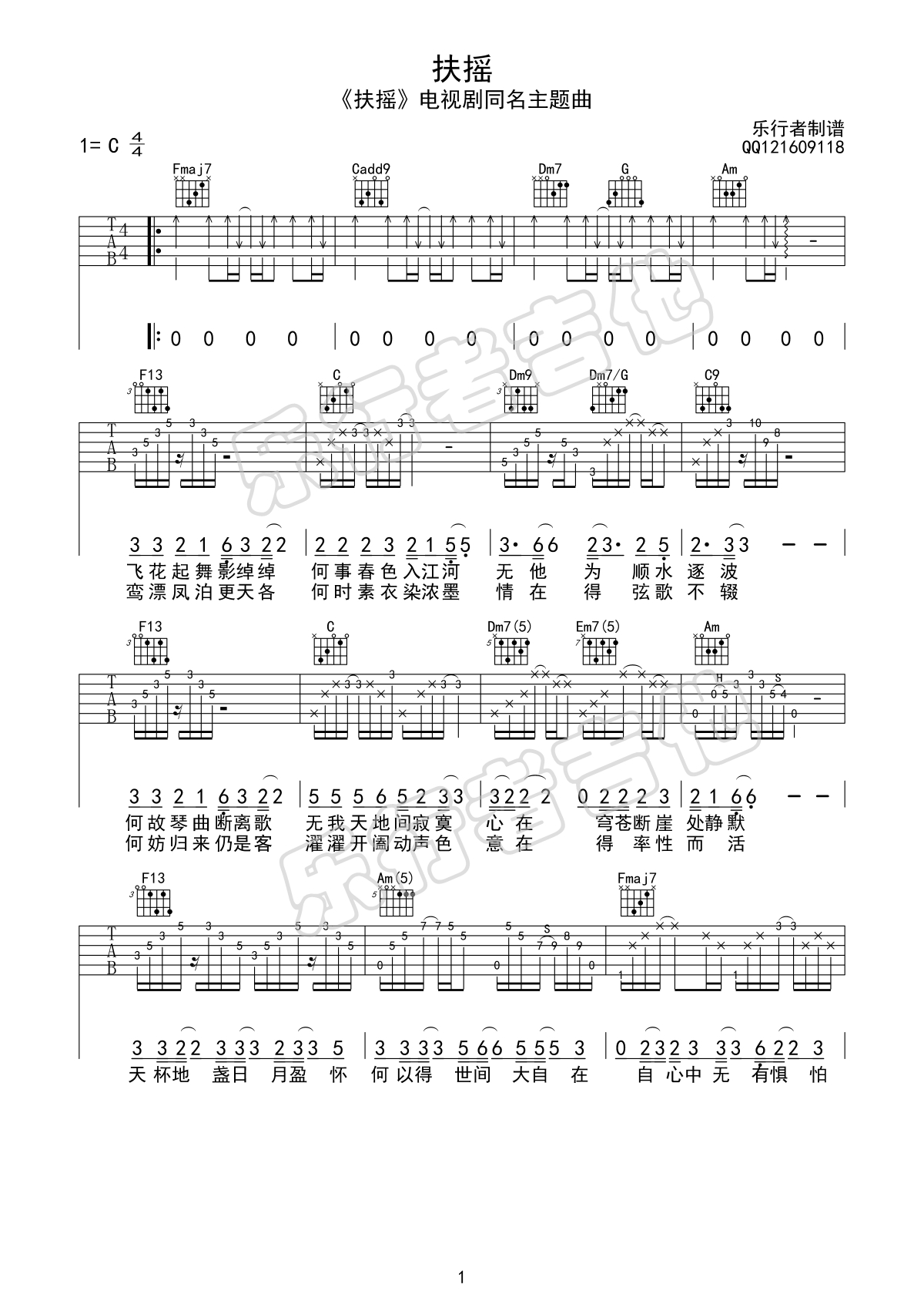 当前位置:琴谱网>吉他弹唱>扶摇