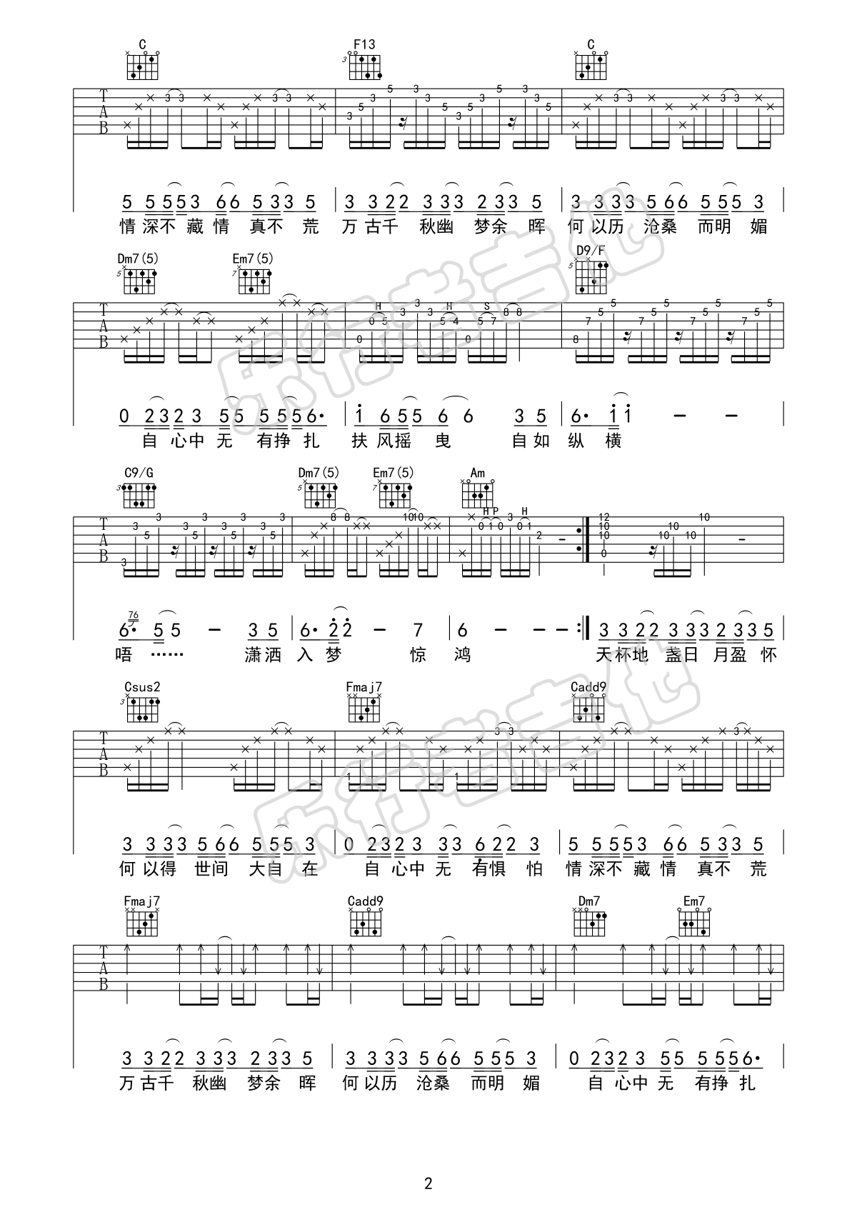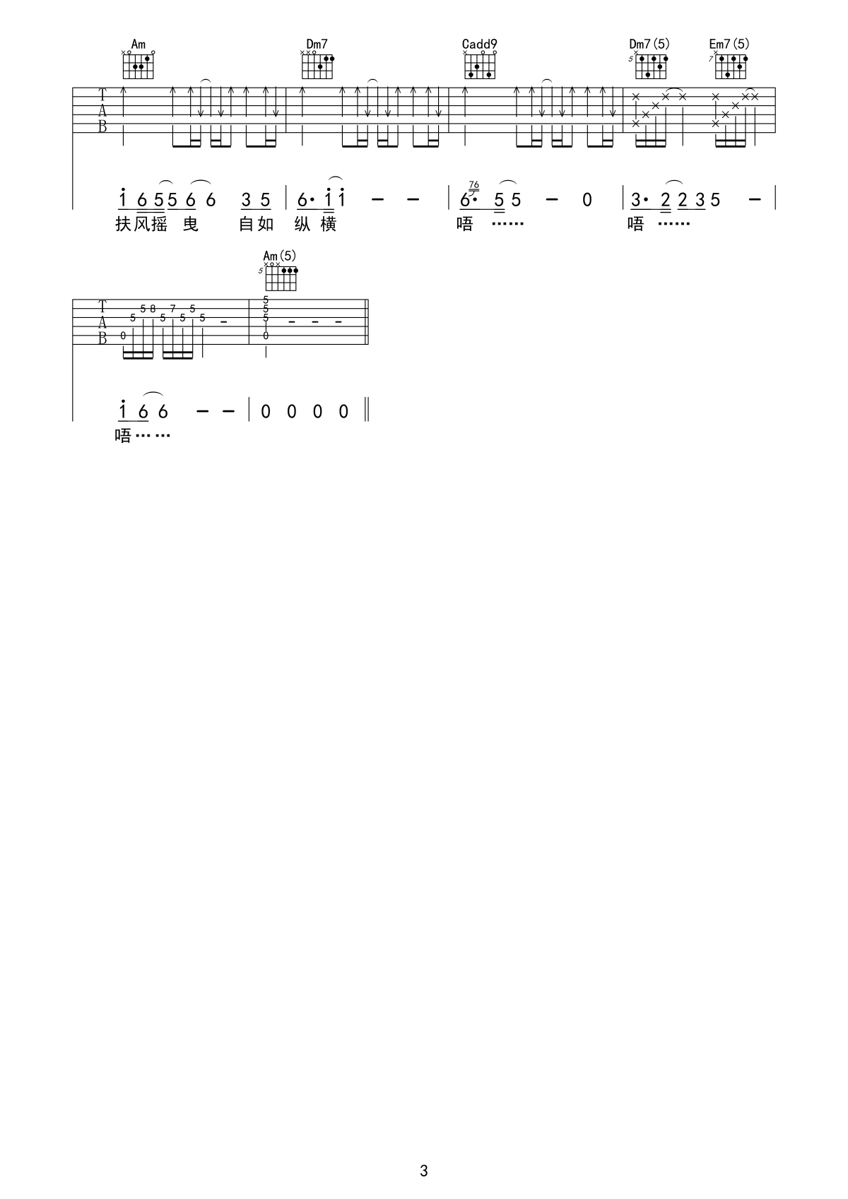 曲谱介绍: 莫文蔚《扶摇》吉他弹唱谱,采用C调指法编配,共有3张高清图谱。
